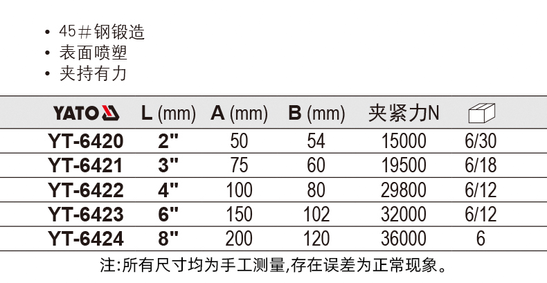 | Цвет: | 2" YT-6420, 3" YT-6421, 4" YT-6422, 6" YT-6423, 8" YT-6424 |