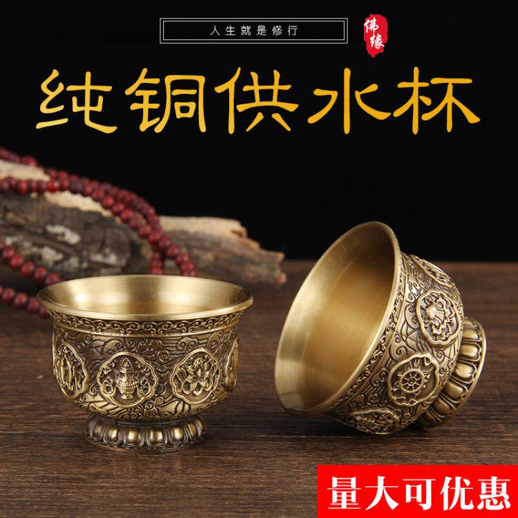 Чашка для водоснабжения чистого бронзы Будды для чашки Будды Тантра Тантра восемь младших водных материалов Священная водяная чашка поставки небольшие украшения