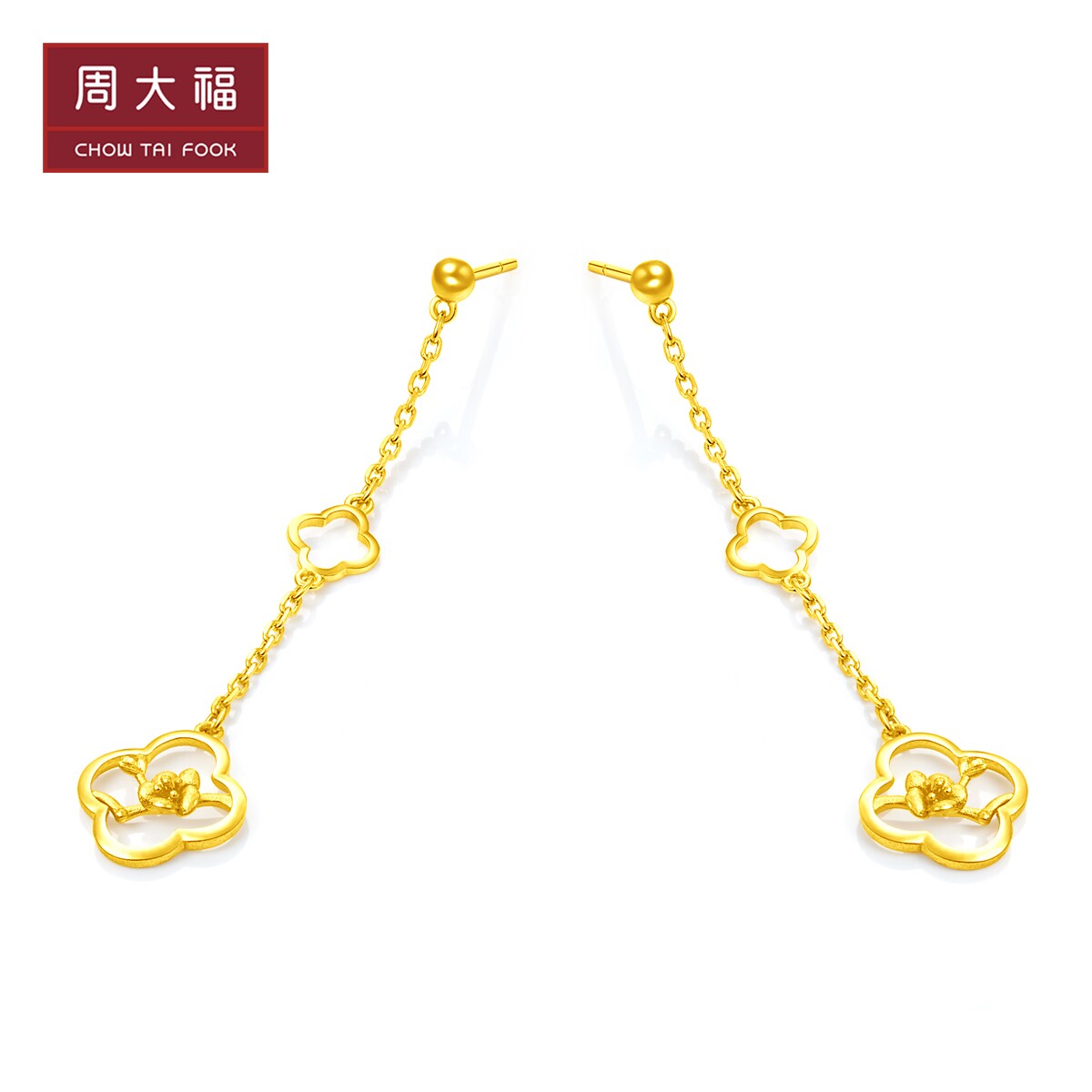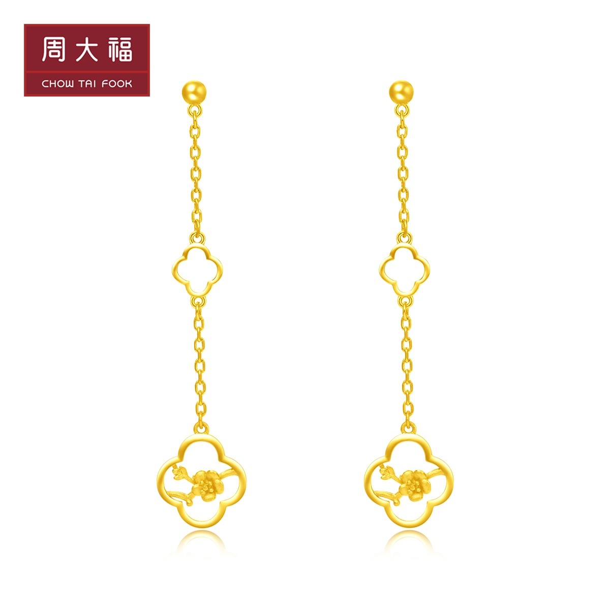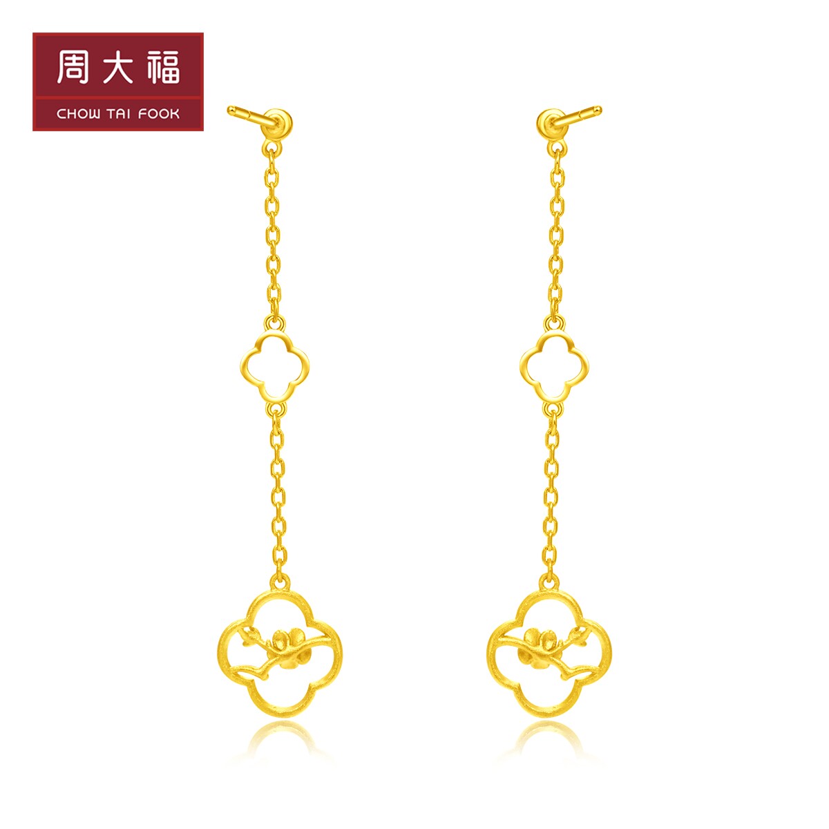 周大福 Ювелирные изделия элегантные цветы сливы Серьги с золотыми золотыми серьгами по цене F220948