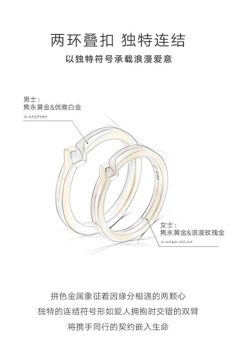 Ювелирное украшение, двухцветное золотое платиновое кольцо для влюбленных подходит для мужчин и женщин, делается под заказ, золото 750 пробы, розовое золото