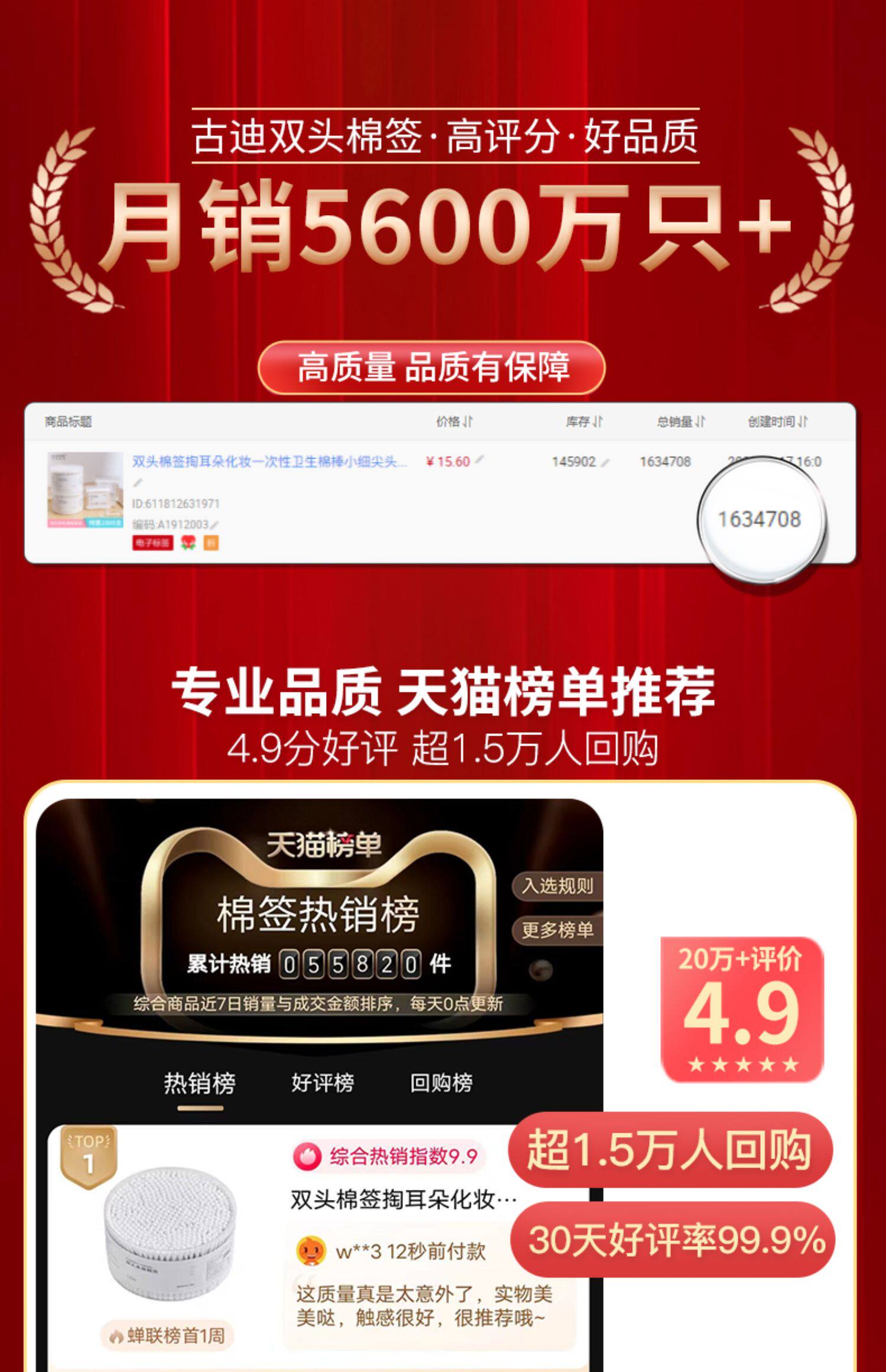 古迪 Ватные палочки, одноразовая хлопковая ухочистка для ушей