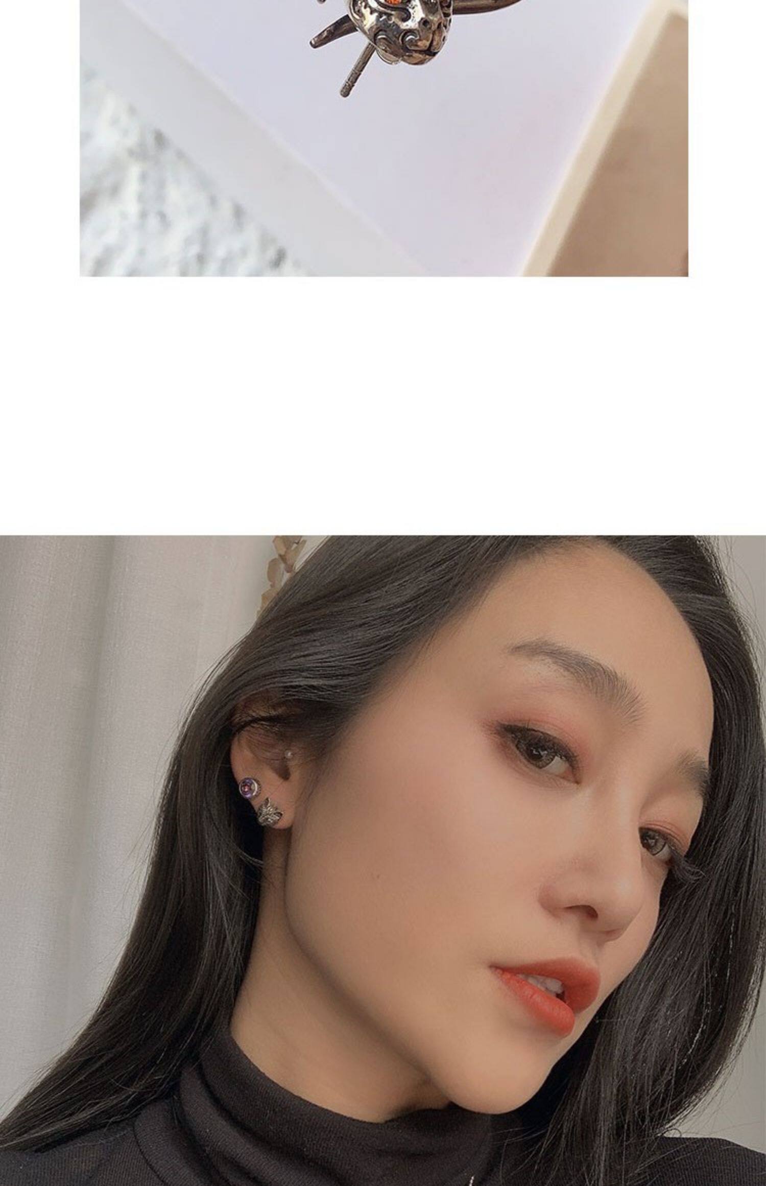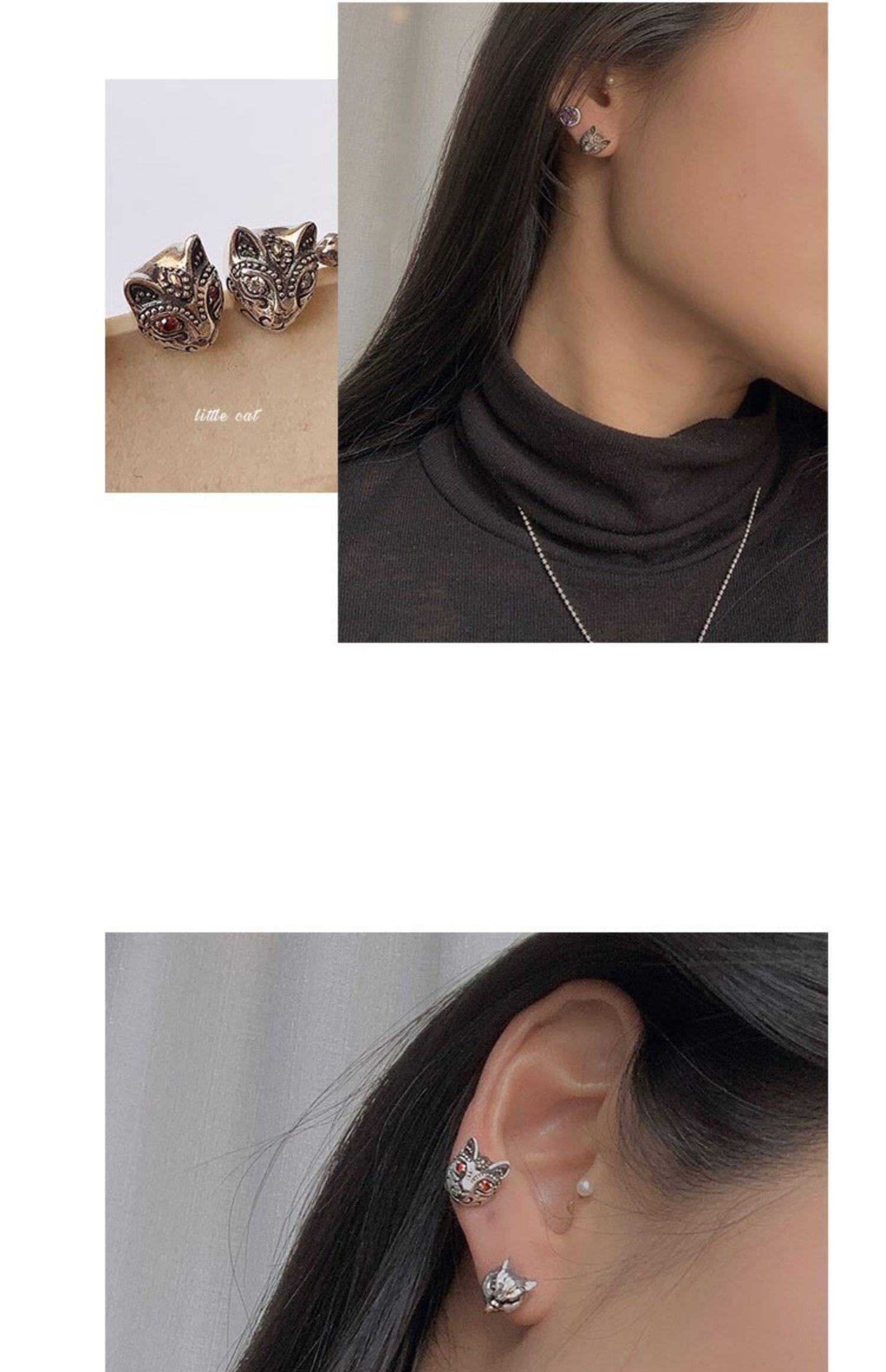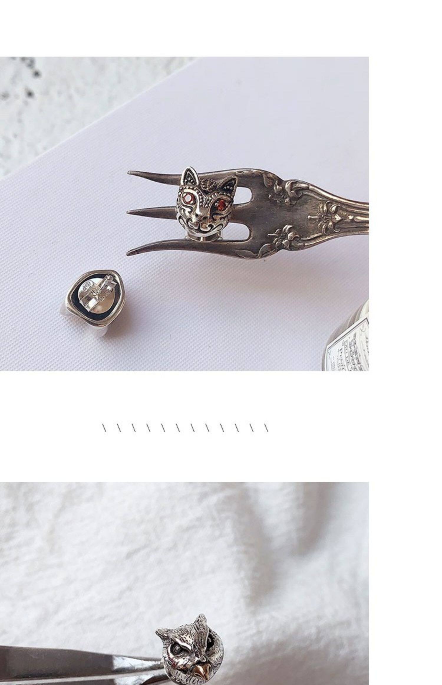 Серьги, ретро кролик, серебро 925 пробы, кот, лев, с драгоценным камнем