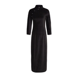Мелкий бутик черная квартира -Стенд с длинной -накрытой стойкой -Опл воротниц высокий расщепление ручной ручной ретро -платье