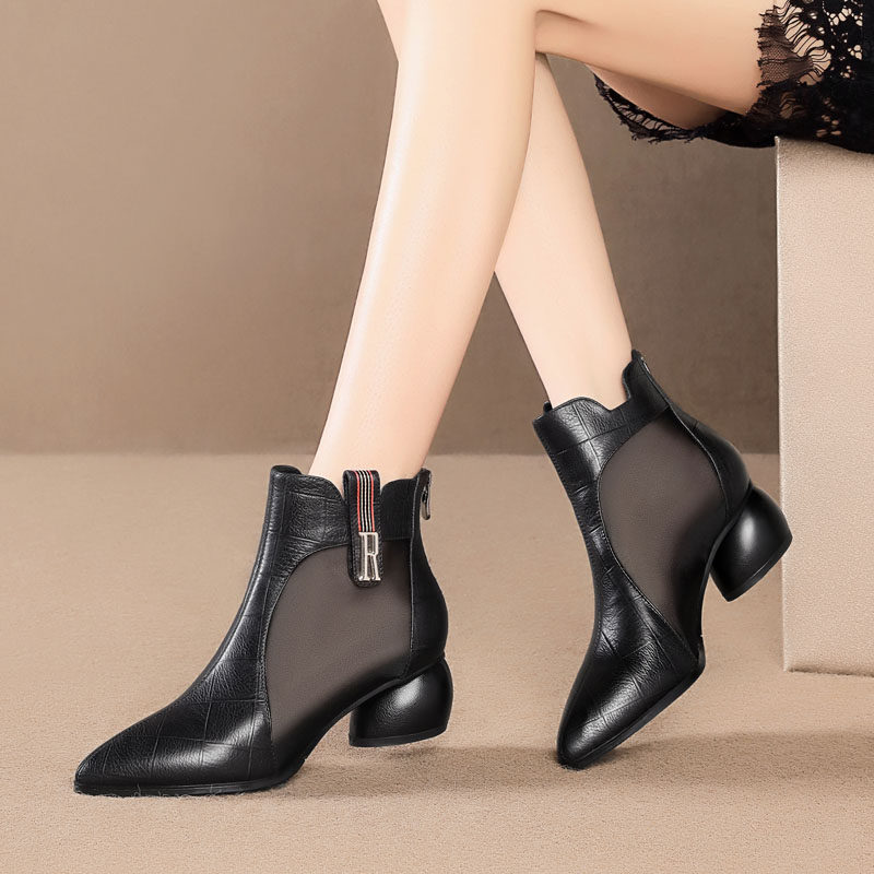 Дышащие сетчатые весенние короткие сапоги, ботинки, из натуральной кожи, модель весна/осень 2023 года, большой размер