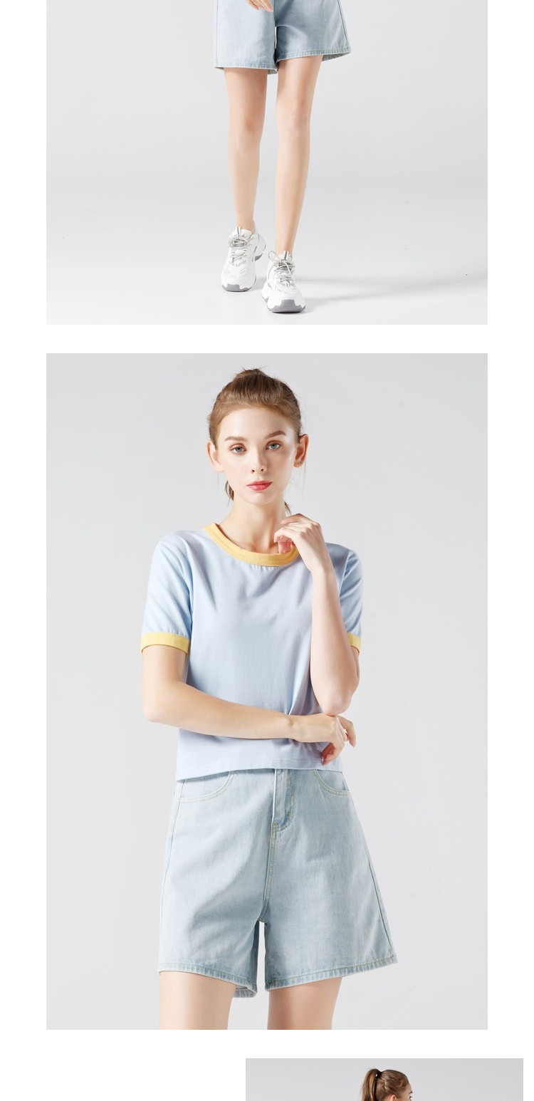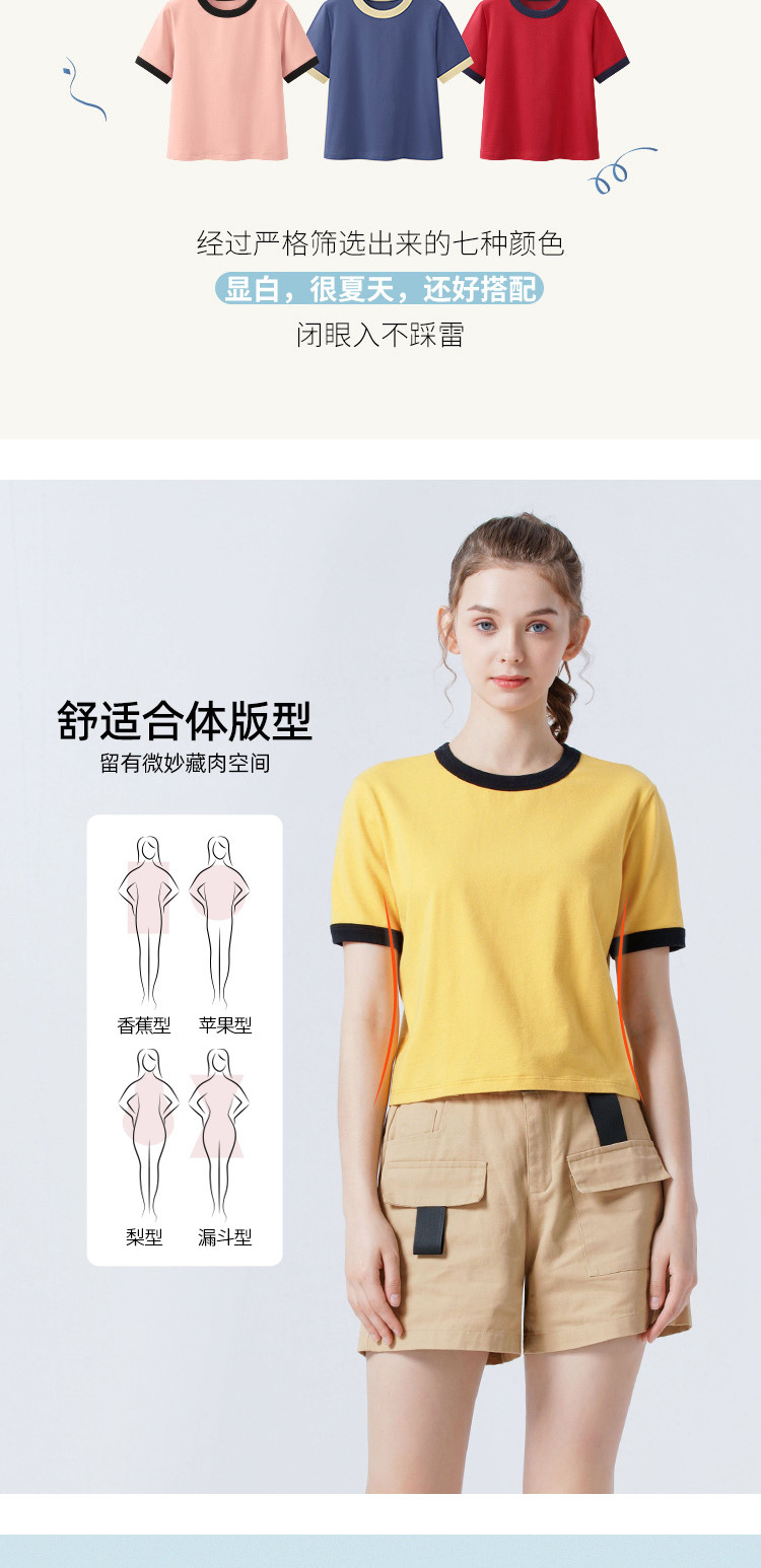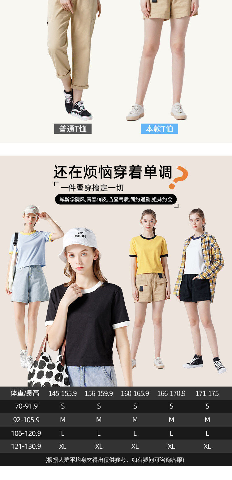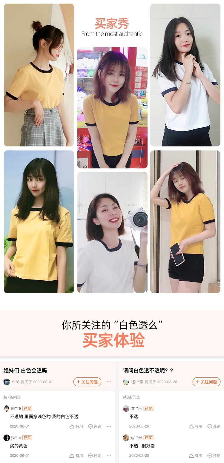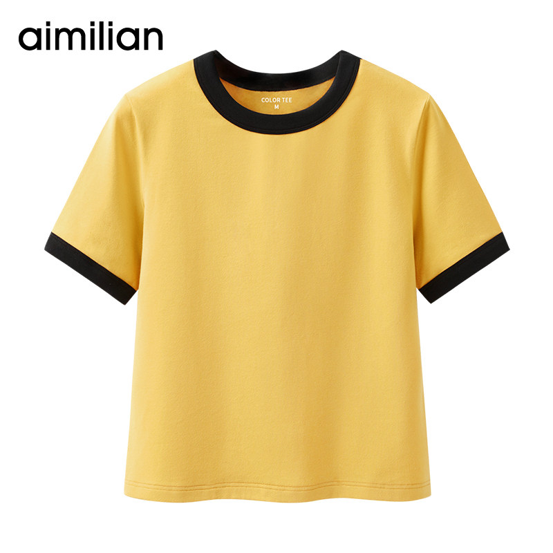 艾米恋 Хлопковая летняя желтая белая короткая футболка, свободный крой