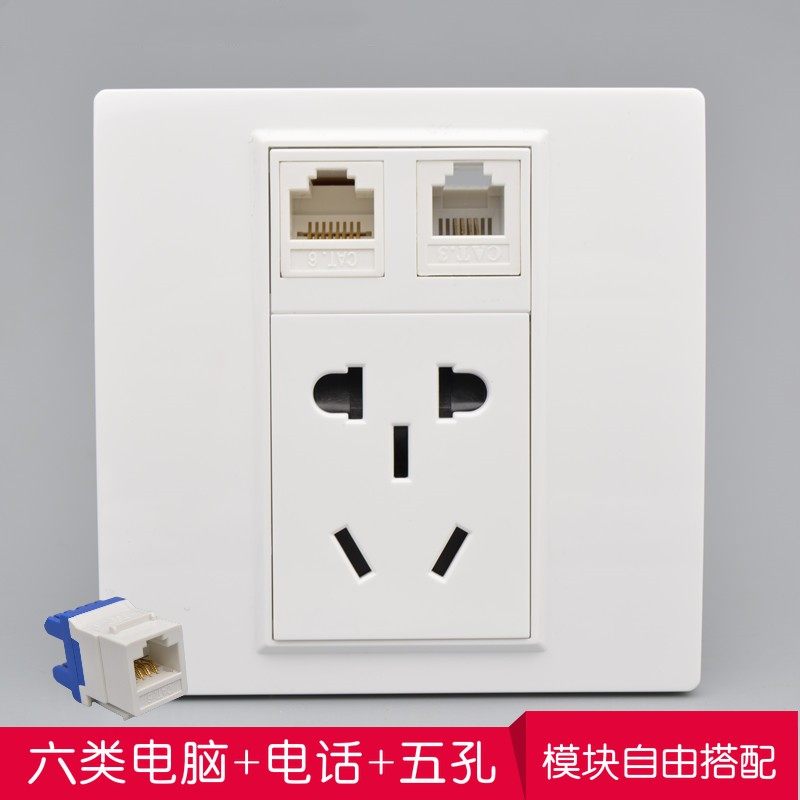 Шесть типов сетевой телефонной полосы Power Socket 86 -тип голосовой телефон Gigabit Computer Network Cable+пять -отверстие панель