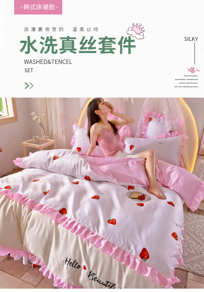 Шелковый шелковистый летний комплект, шелковое покрывало, 4 предмета