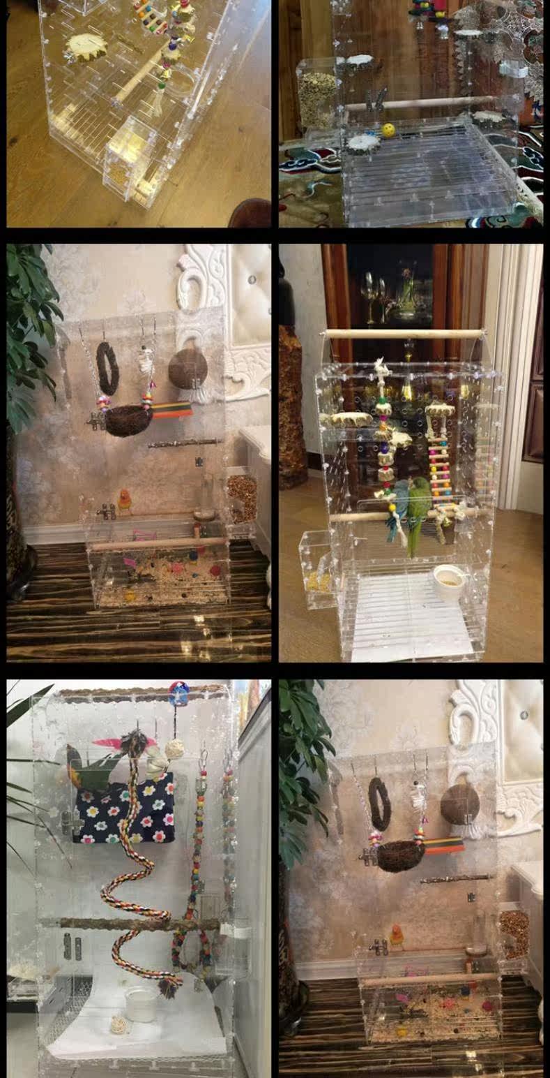 Клетка акриловой птицы Прозрачная клетка для птиц серая клетка из нержавеющей стали Клетка попугай