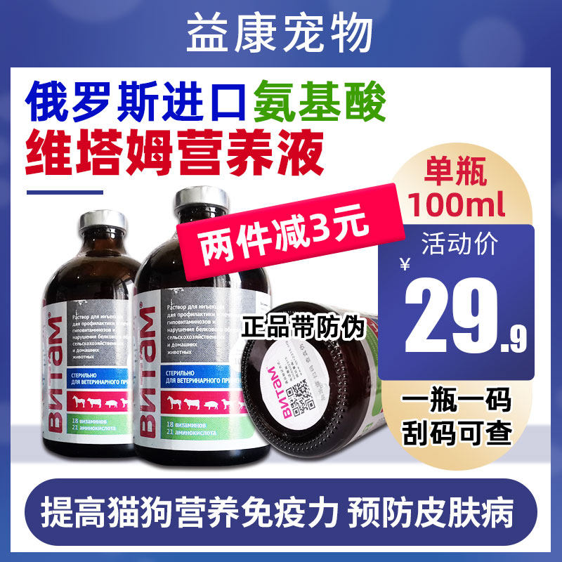 Российские жесткие товары, витат-питательный раствор, 100 мл на бутылку, два раза в день, 1-2 мл каждый раз, ежедневно обеспечивает различные питательные вещества и витамины, необходимые для кошек и собак, и улучшает иммунитет.Красота и уход за кожей, предотвращение кожных заболеваний, содержат лизин, который нуждается в кошках, улучшает выживаемость детенышей.Россия импортируется, и инъекция является многоцелевым для аминокислотного раствора для питания, 100 мл на бутылку, 2 раза в день, 1-2 мл каждый раз. обеспечить иммунитет.Богатый лизин нужен для кошек.Новорожденные котята также могут принять улучшенную конституцию!