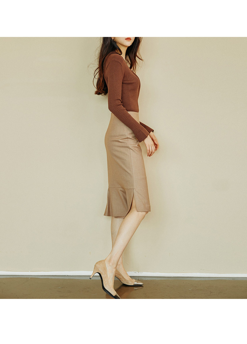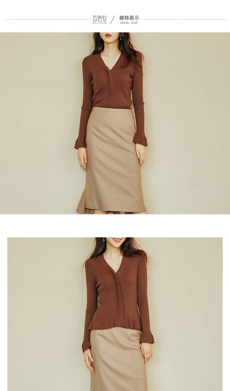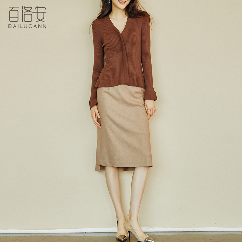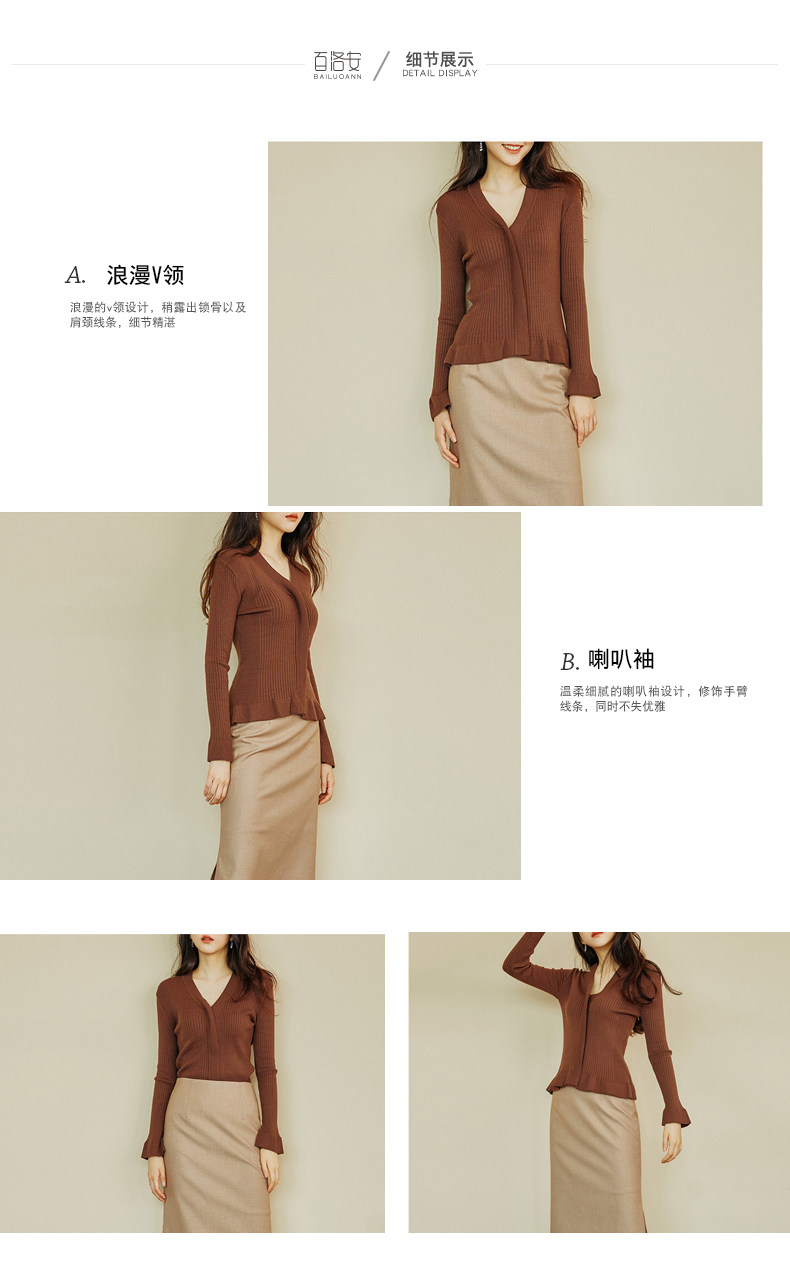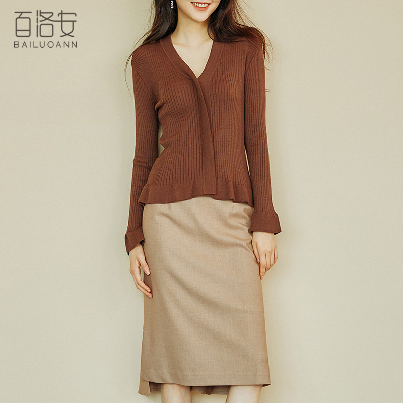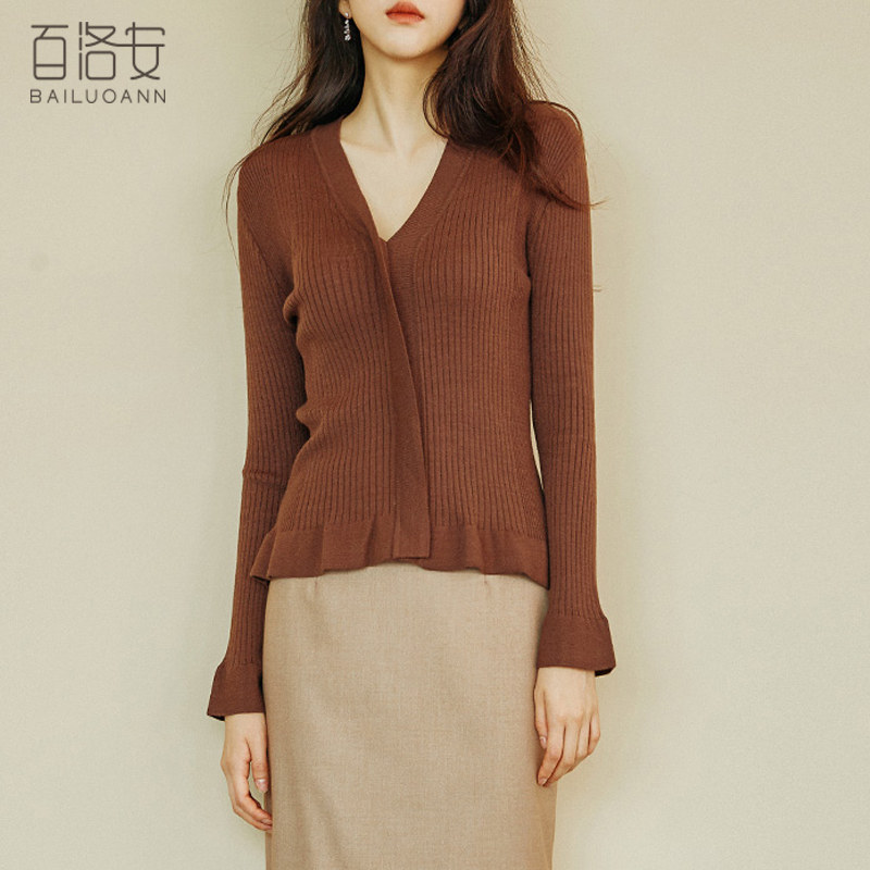 百洛安 Трикотажный лонгслив, весенний эластичный свитер, облегающий крой