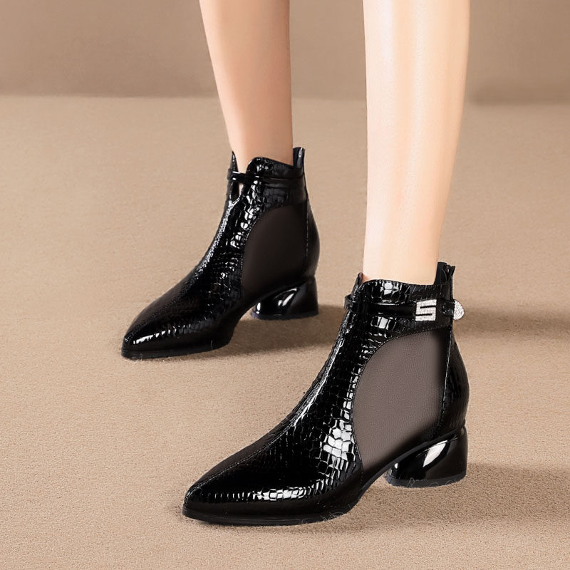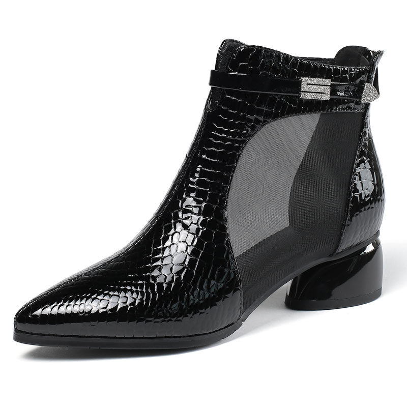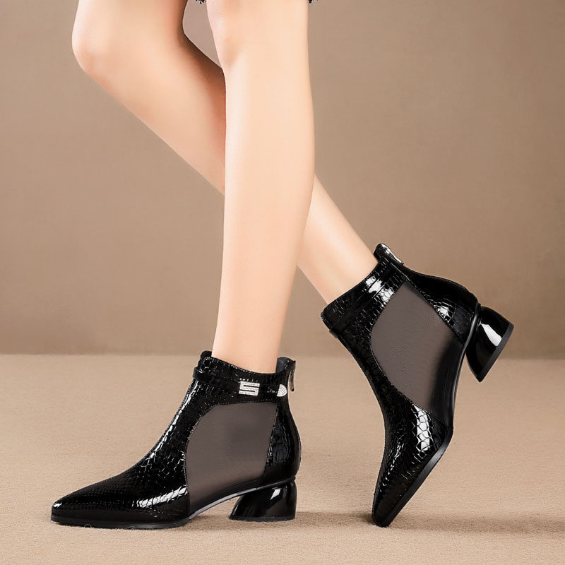 Весенние сетчатые модные сапоги, обувь на каблуке, сандалии, 2020, из натуральной кожи, большой размер