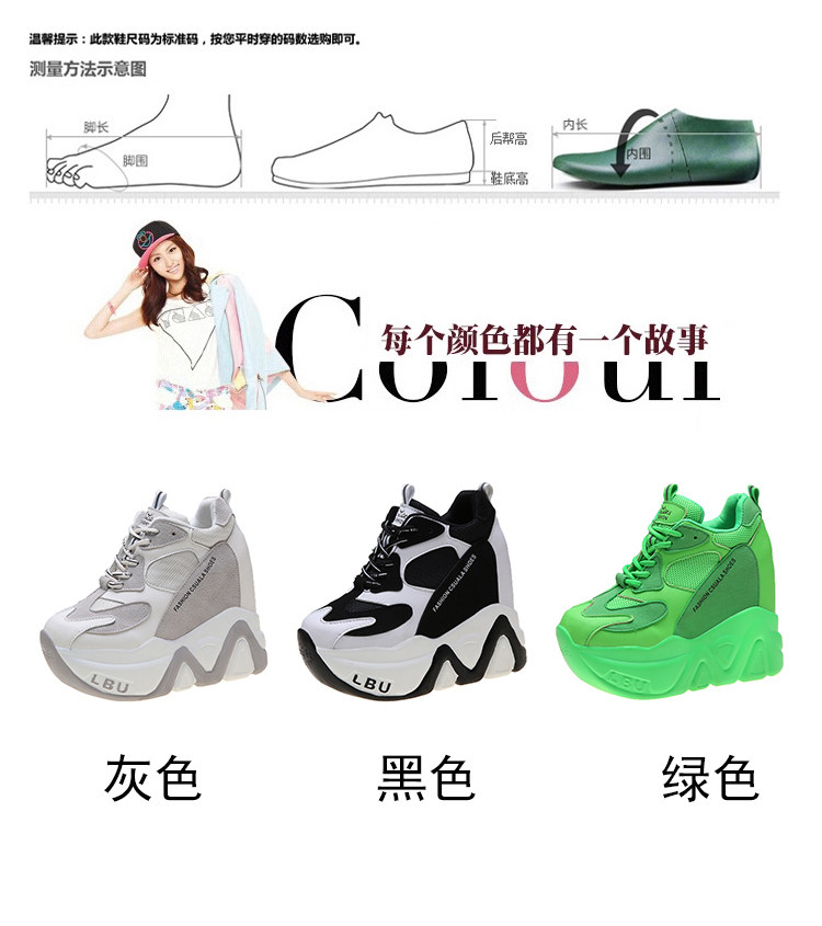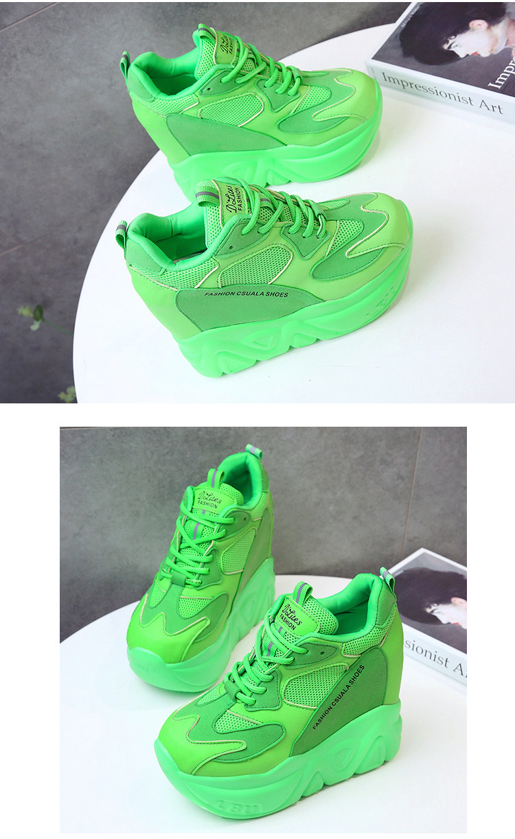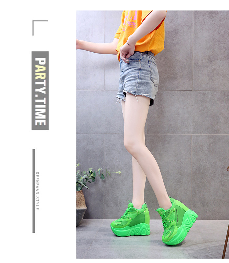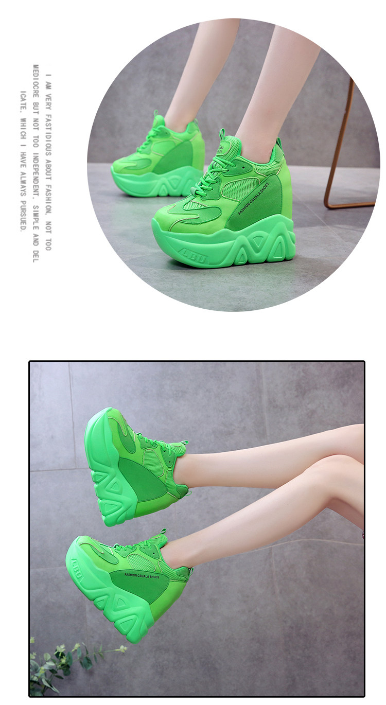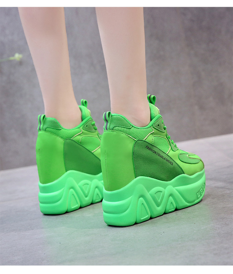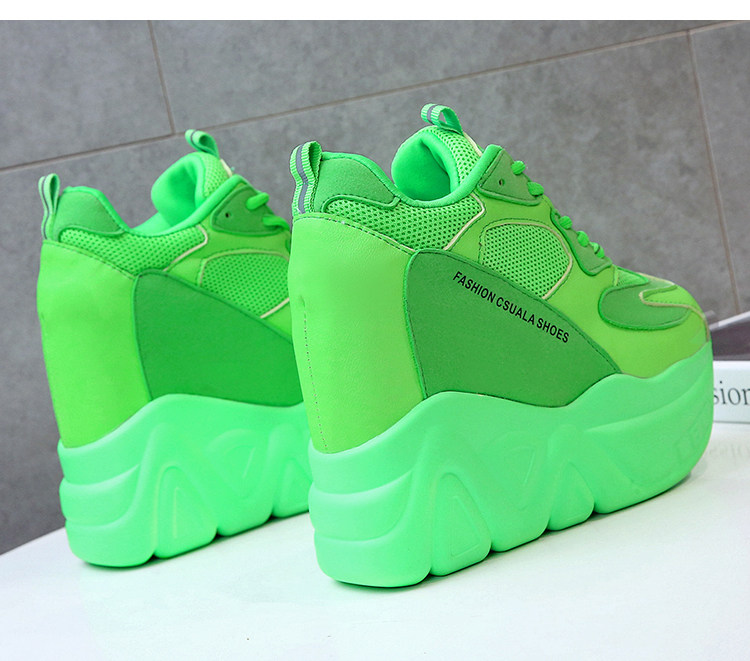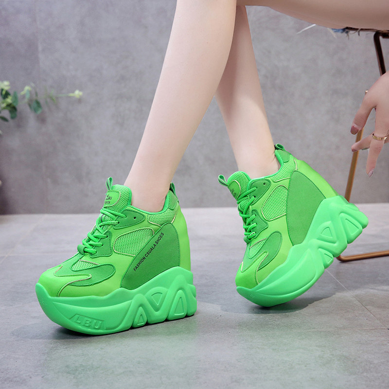 Модные туфли для папы, флуоресцентно-зеленые, внутренняя высота 12 см, туфли на платформе на толстой подошве, женская спортивная обувь интернет-знаменитостей