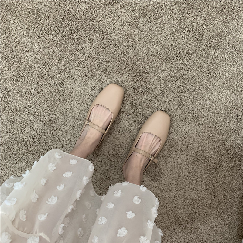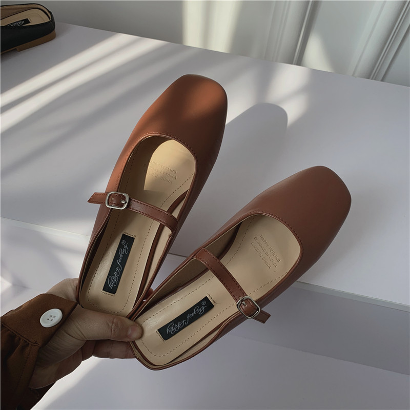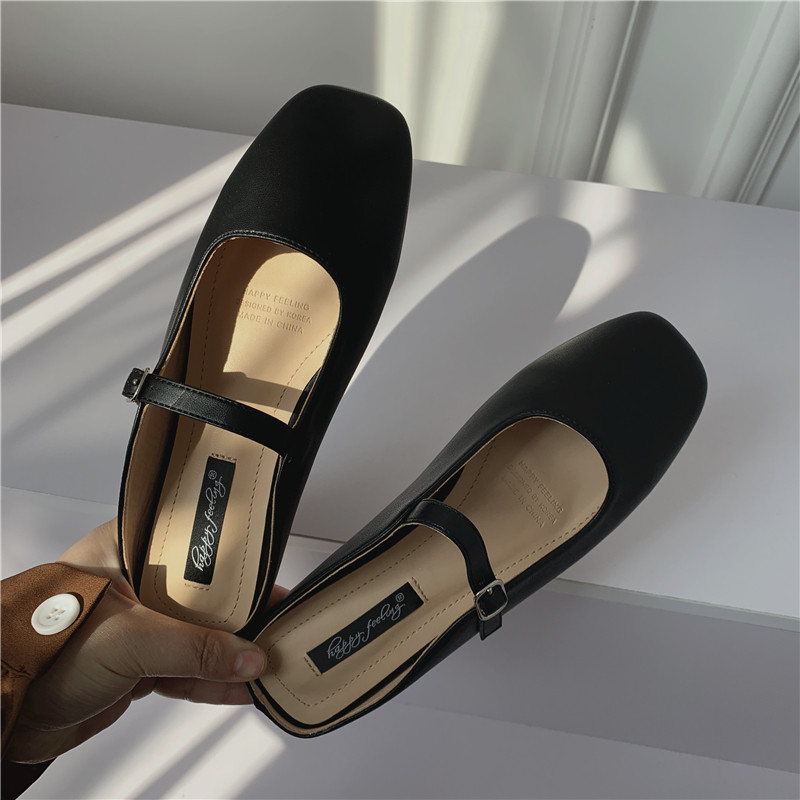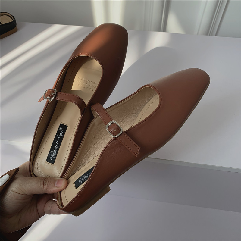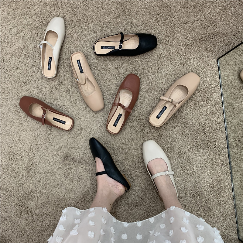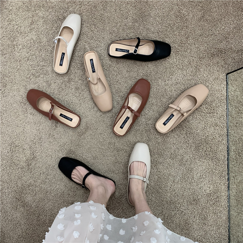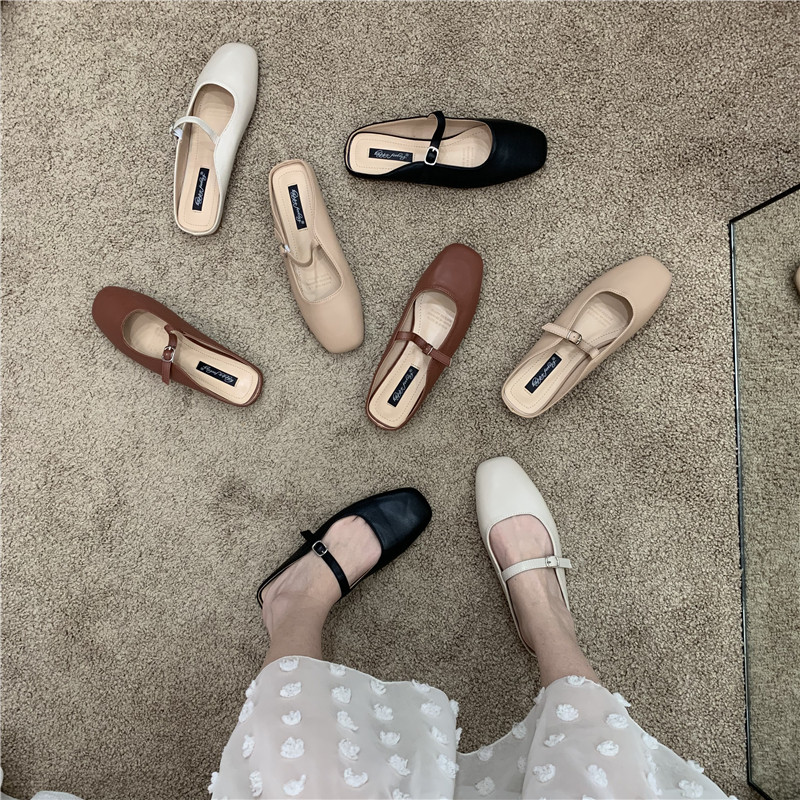 Туфли на плоской подошве, женская обувь, осень 2024, новая универсальная верхняя одежда Мэри Джейн с квадратным носком, туфли-шапки на плоской подошве с полуперетаскиванием