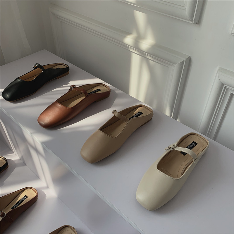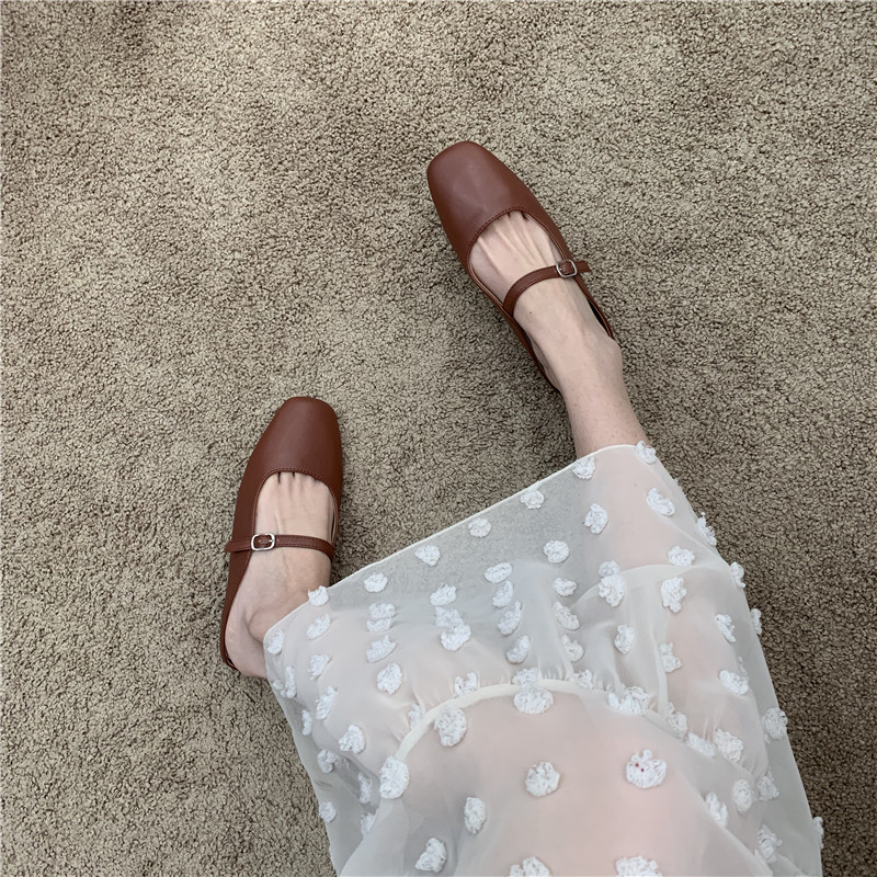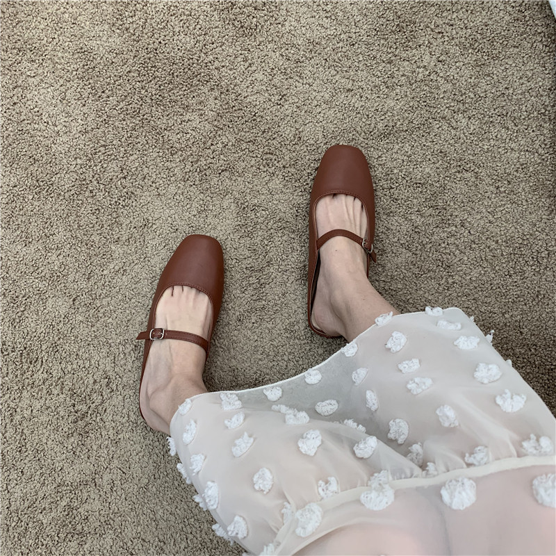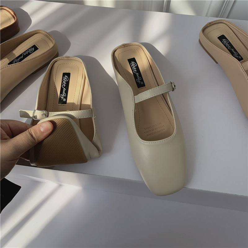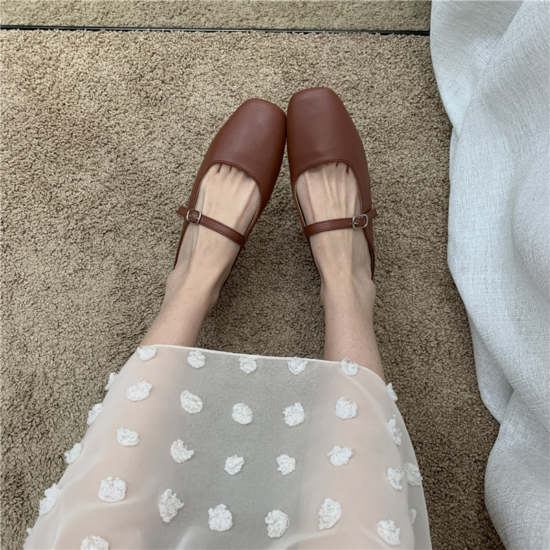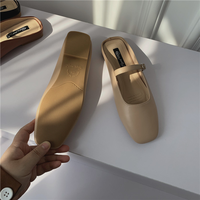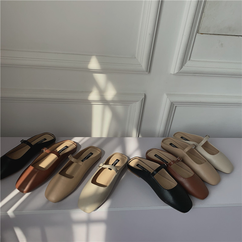 Туфли на плоской подошве, женская обувь, осень 2024, новая универсальная верхняя одежда Мэри Джейн с квадратным носком, туфли-шапки на плоской подошве с полуперетаскиванием