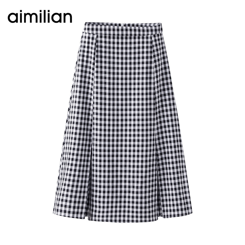 艾米恋 Клетчатая демисезонная длинная юбка, высокая талия