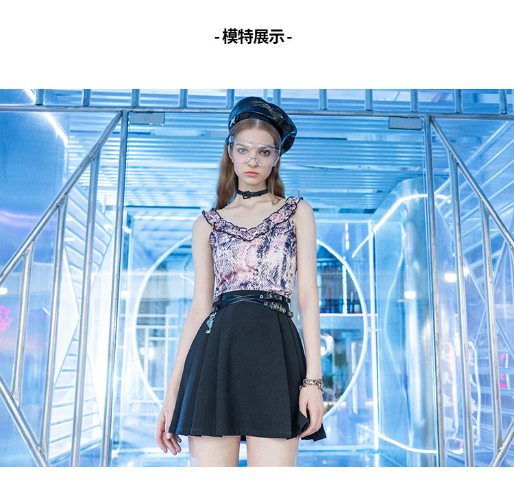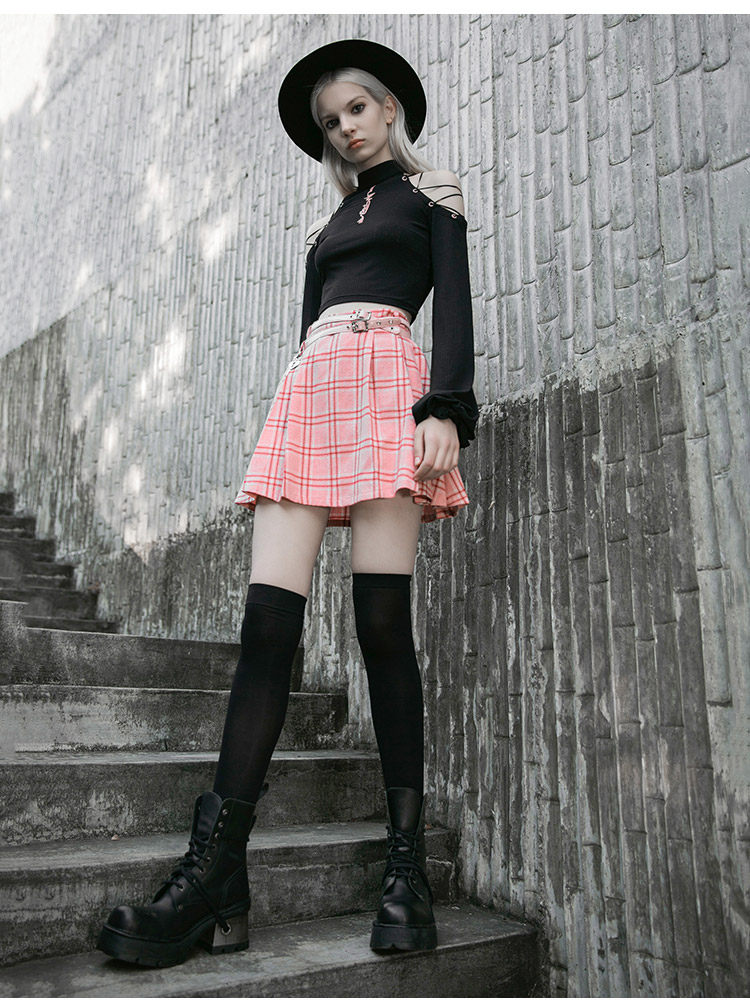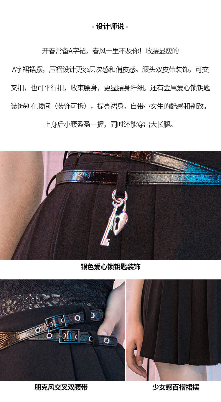PUNK RAVE Приталенный ремень, летняя юбка в складку, высокая талия, А-силуэт