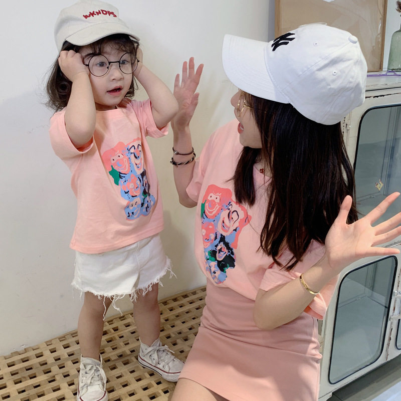 Летняя мультяшная футболка с коротким рукавом, семейный стиль, сезон 2021, в корейском стиле, популярно в интернете