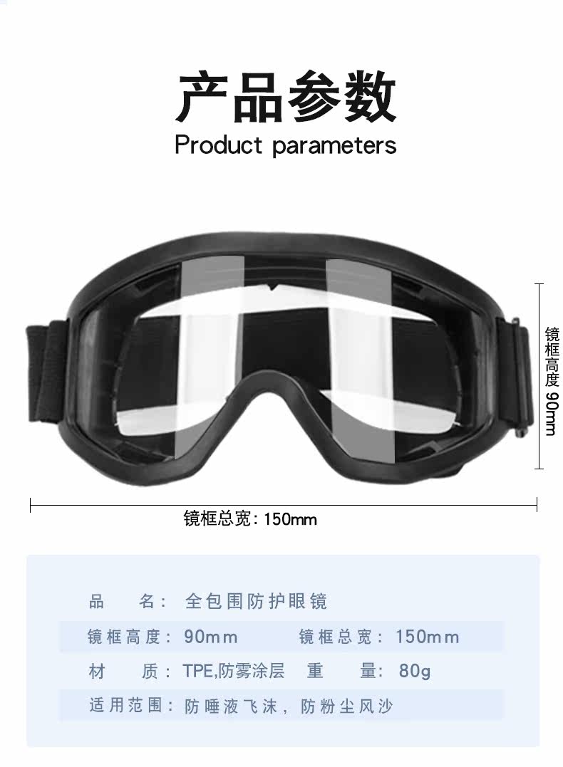 Полностью закрытые очки, пыль, анти -ффог, воздушная страховая страховка, бортовые брызги миопии в защитных очках