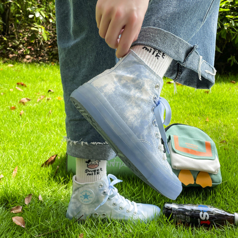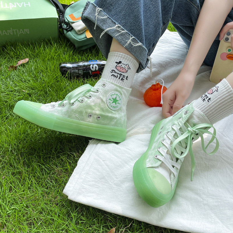 Высокие парусиновые туфли для женщин ulzzang, универсальные модные туфли в стиле Хёна на толстой подошве, весенний стиль 2022, гонконгский стиль.