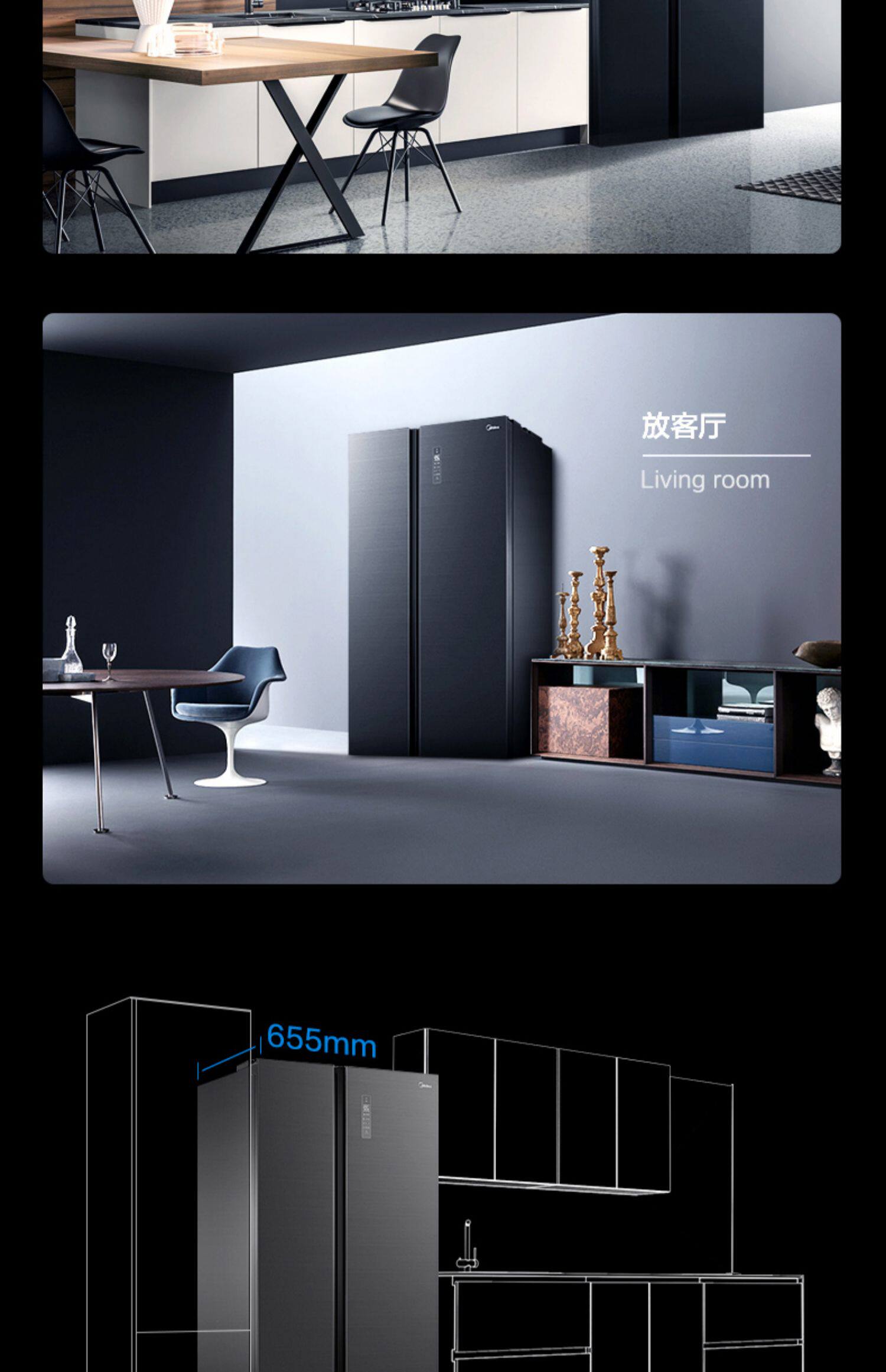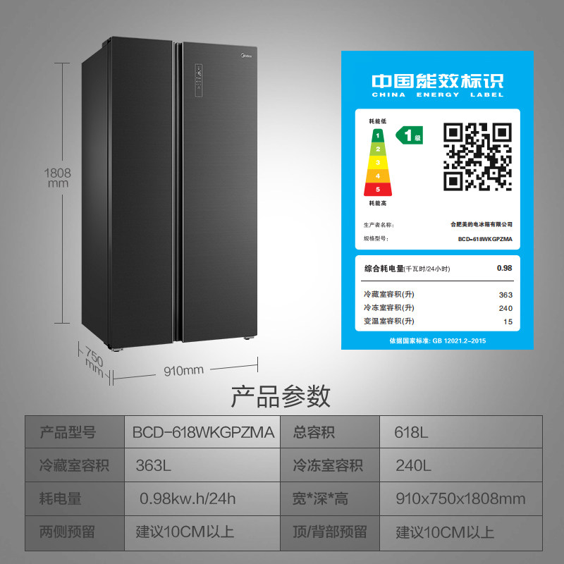 Midea BCD-618WKGPZMA Установите чистый гладкий стерилизатор дверной стерилизации Двойной открытие двойной варэль-конверсию Smart Holrigrator
