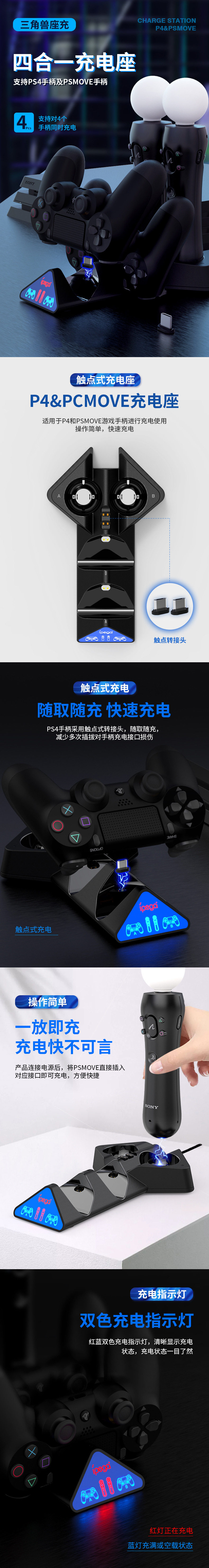 PS4 Ручка с четырьмя зарядками двойной сеал PS4 Move Charger PS4 VR Ручка с несколькими функциями зарядки зарядки сиденья зарядки