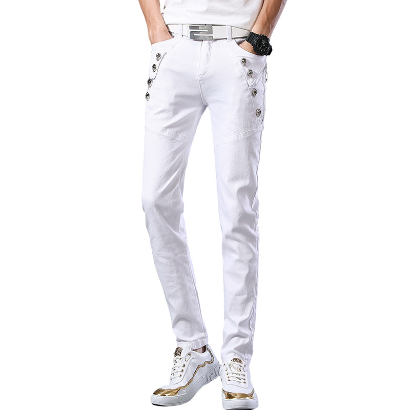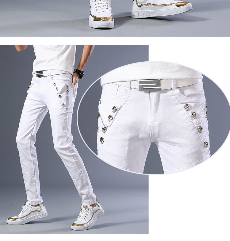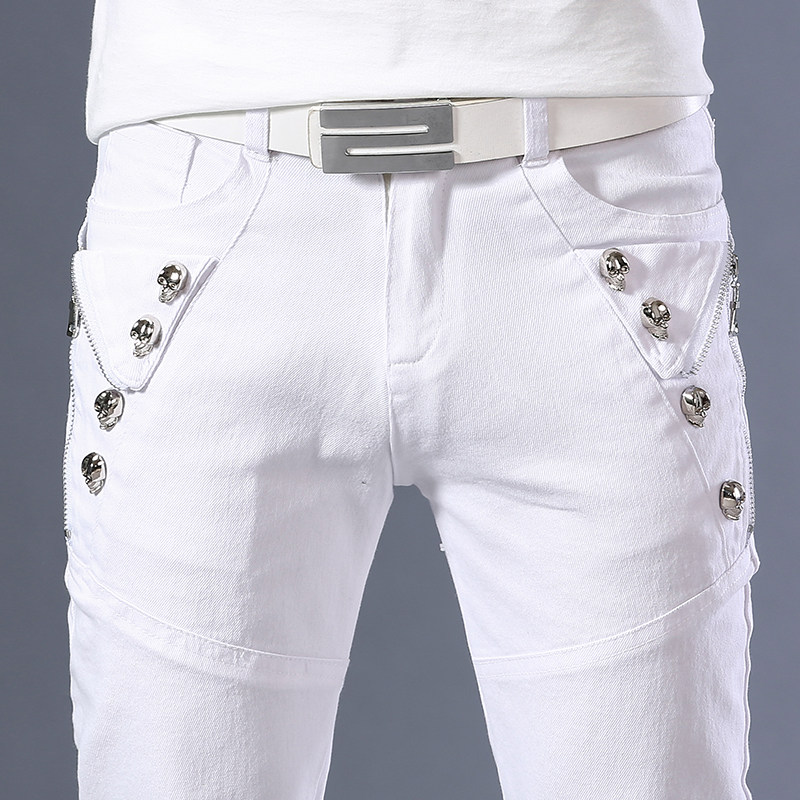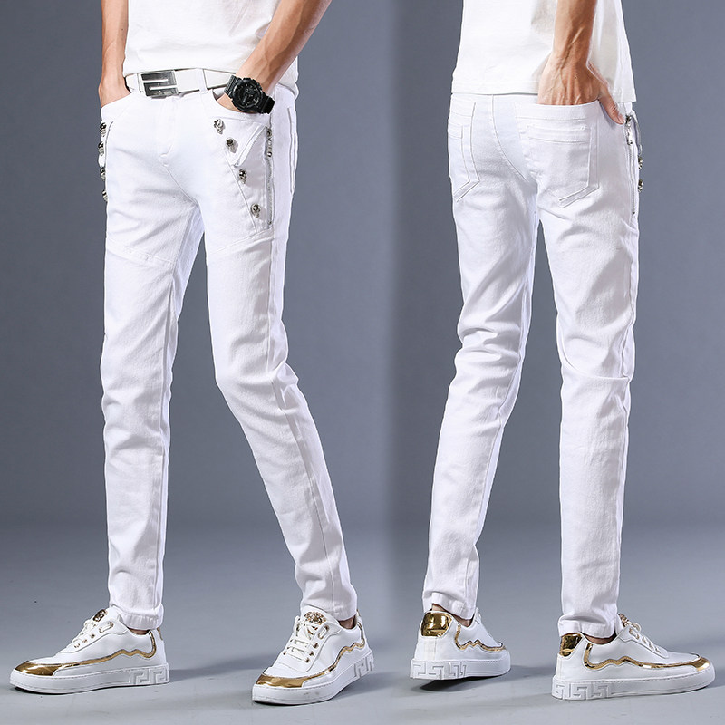Мужские летние тонкие трендовые белые штаны с молнией, 2020, в корейском стиле