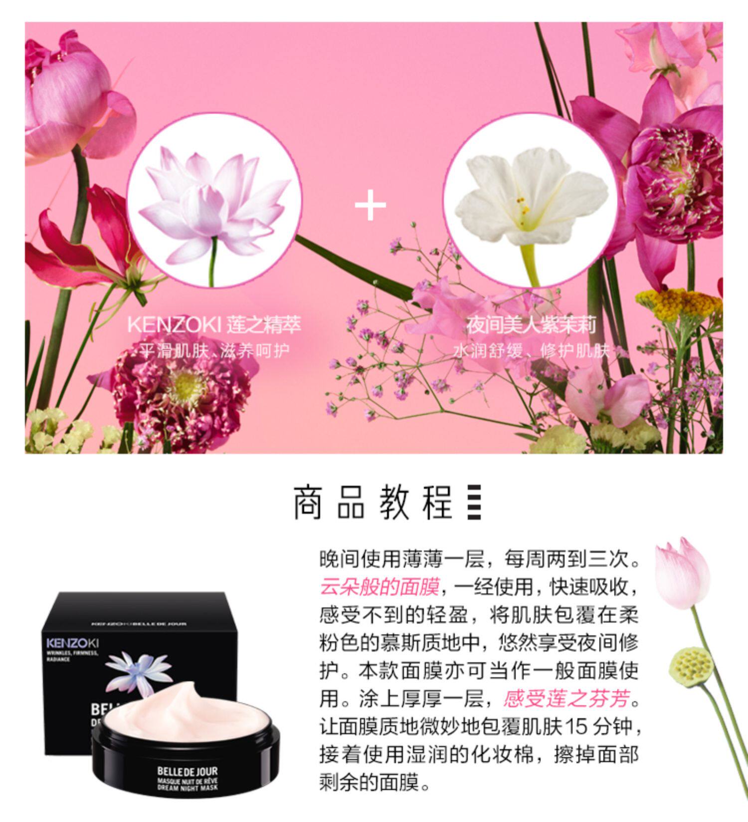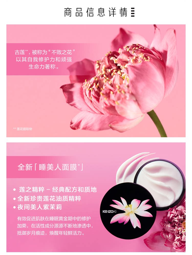 KENZO/凯卓 Восстанавливающая ночная увлажняющая питательная маска для лица, легкое нанесение