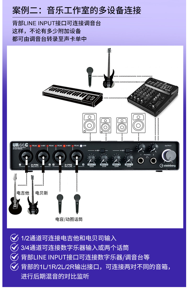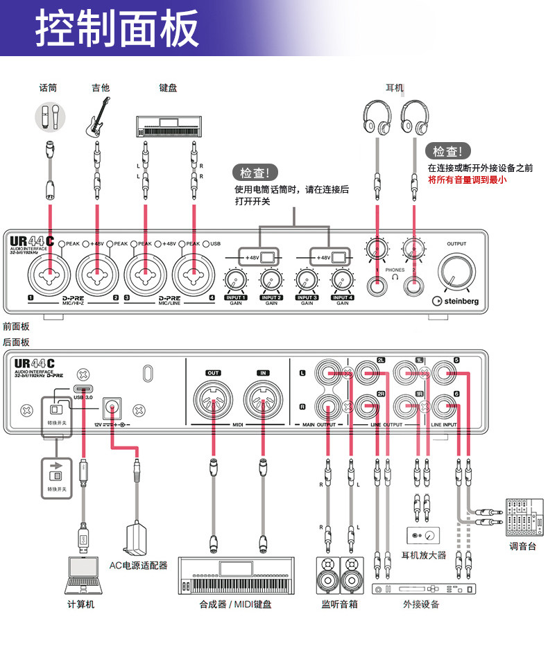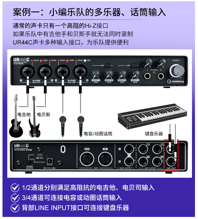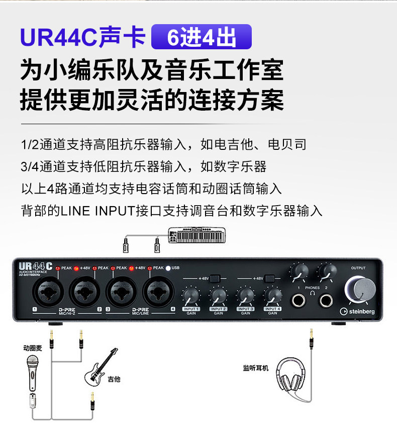 Steinberg/Yamaha Yamaha UR44C Studio Studio Аранжировка аудио -интерфейса USB -группа звукозапись звуковая карта