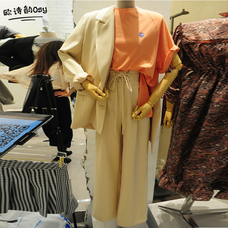 Весенний модный универсальный пиджак классического кроя, штаны, комплект, 2020, в корейском стиле