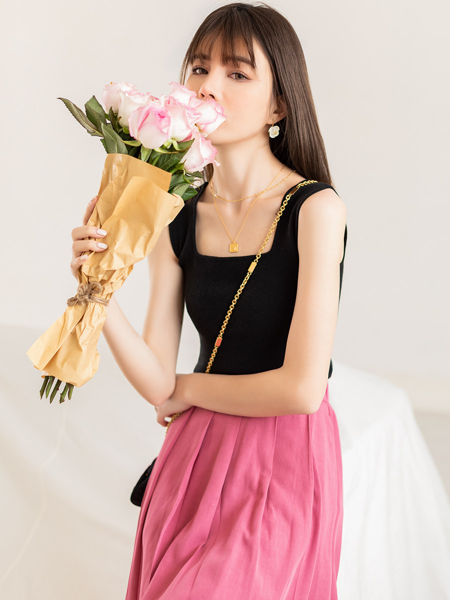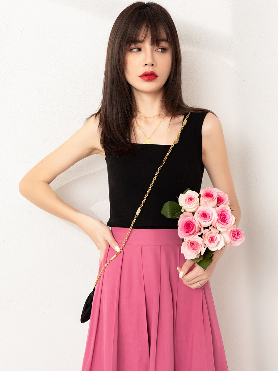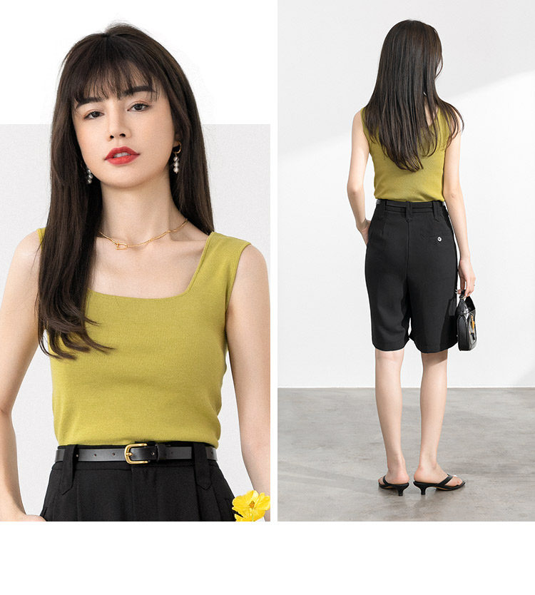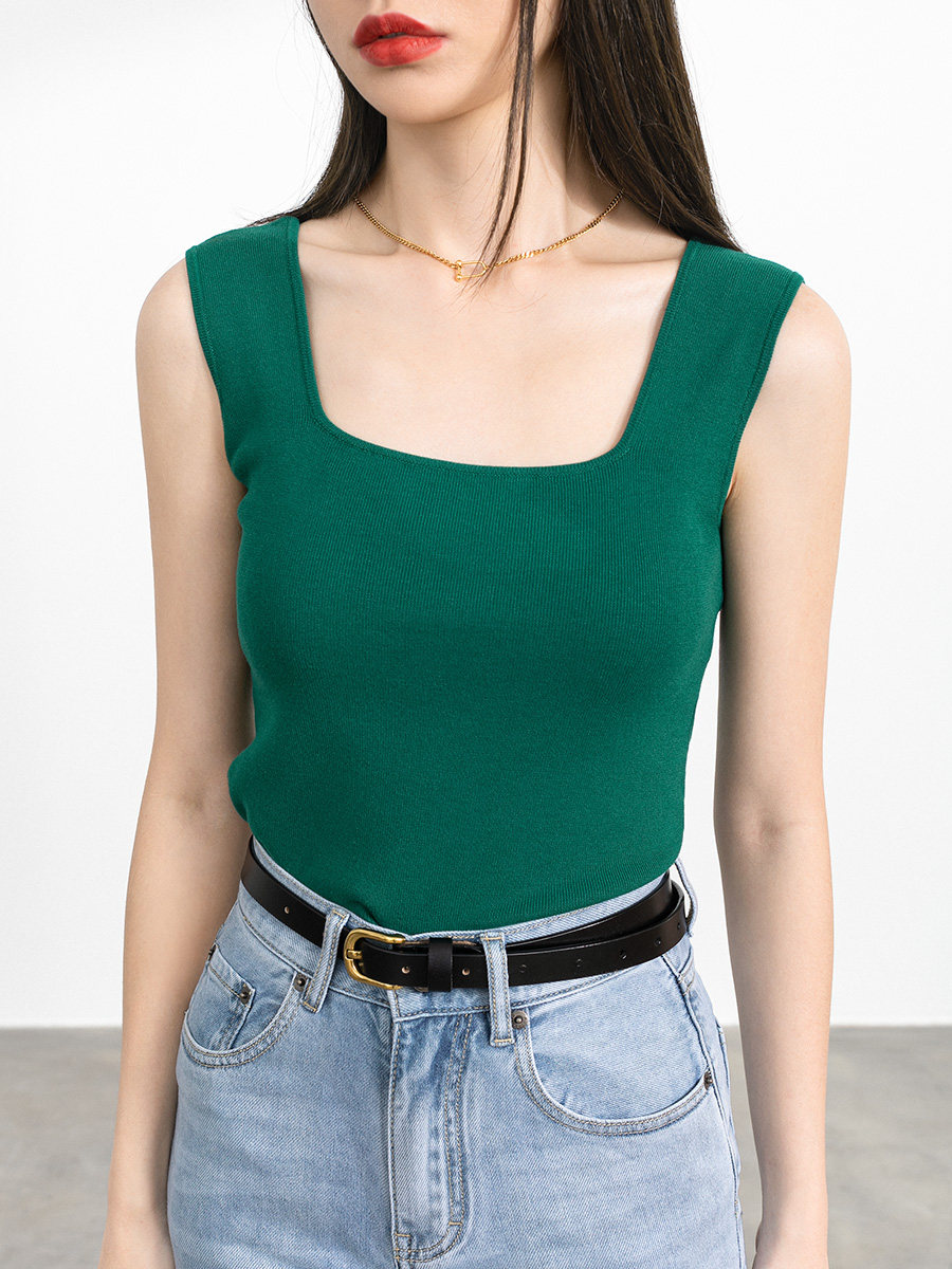 Черный трикотажный бюстгальтер-топ, базовая осенняя футболка без рукавов, термобелье, квадратный вырез, для маленькой груди