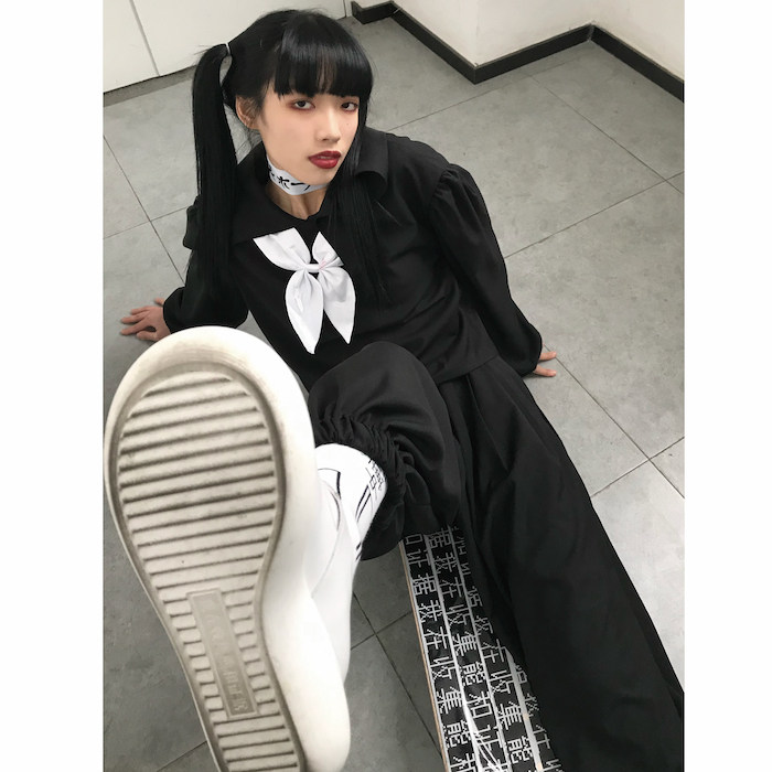 Томайские одноклассники, сидящие в заднем ряду / пузырьковые брюки и одежду для водных игроков.