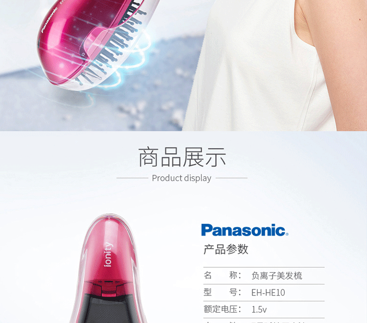 Панасоновая негативная ионная ионная расчесала ионная ионная расческа, вьющиеся волосы, расчесываемые женские волосы EH-HE10VP405