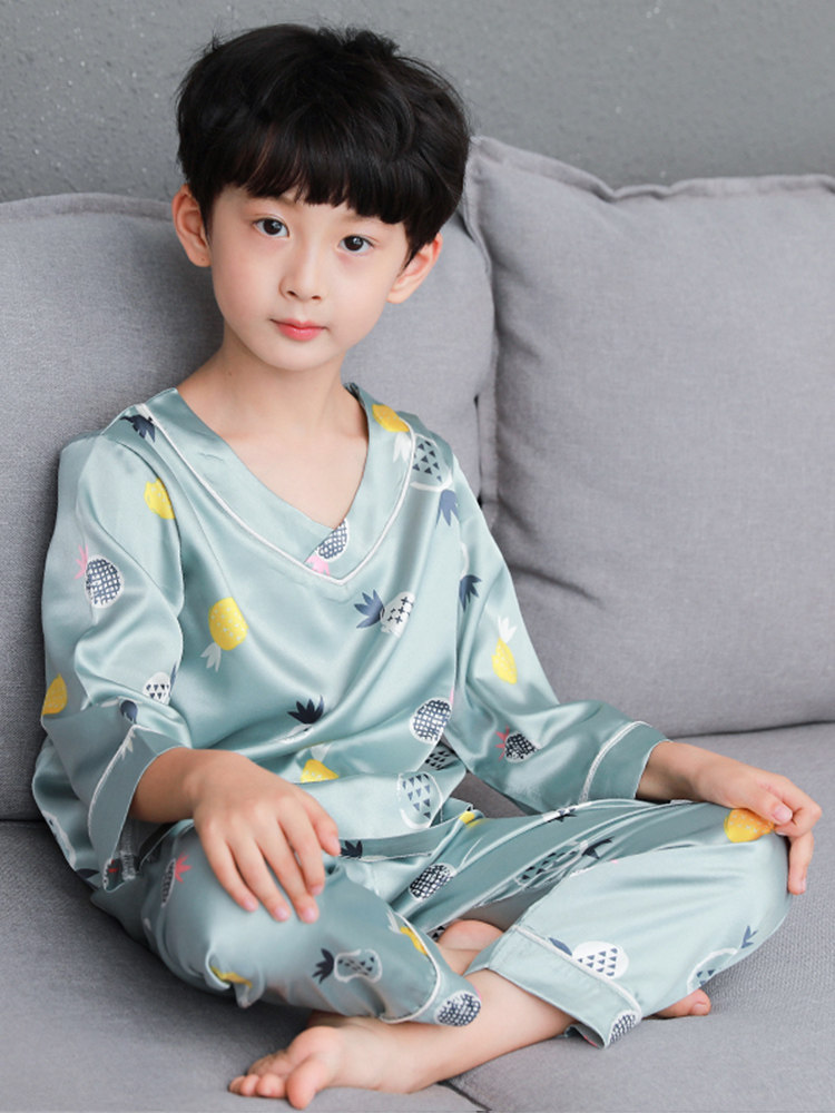 Детская тонкая пижама, осенний лонгслив для мальчиков, шелковый мультяшный летний комплект, короткий рукав