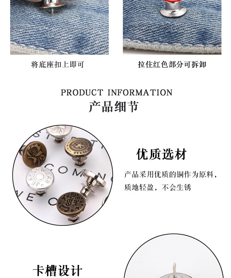 Блок -кнопки Джинсы можно отрегулировать, чтобы разобрать талию, талия не имеет пряжки для ногтей, исправляя темную пряжку, бесплатно