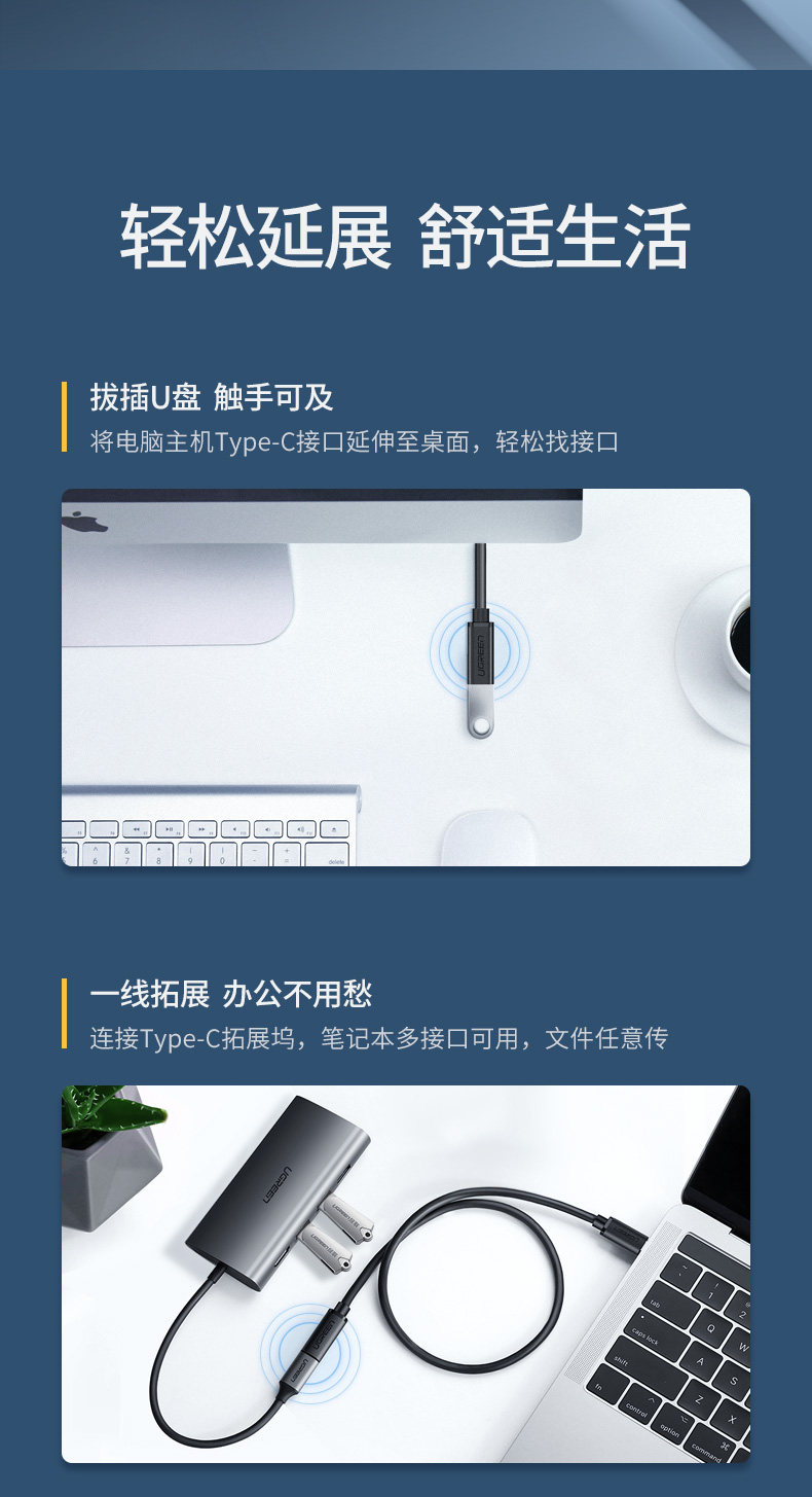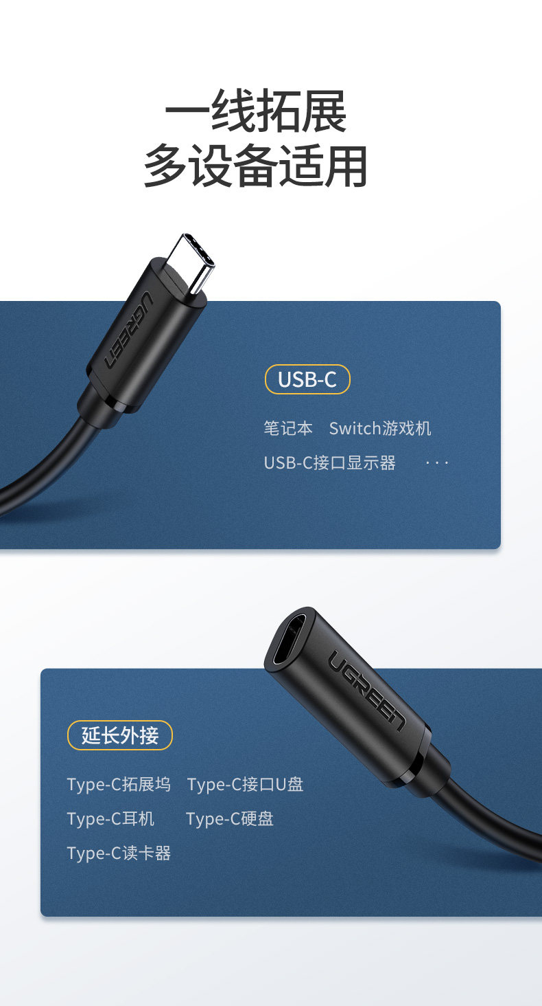 绿联 Удлинительный кабель Typec Male к женскому порту USBC подходит для 16 iPhone15 переключателя зарядного кабеля.