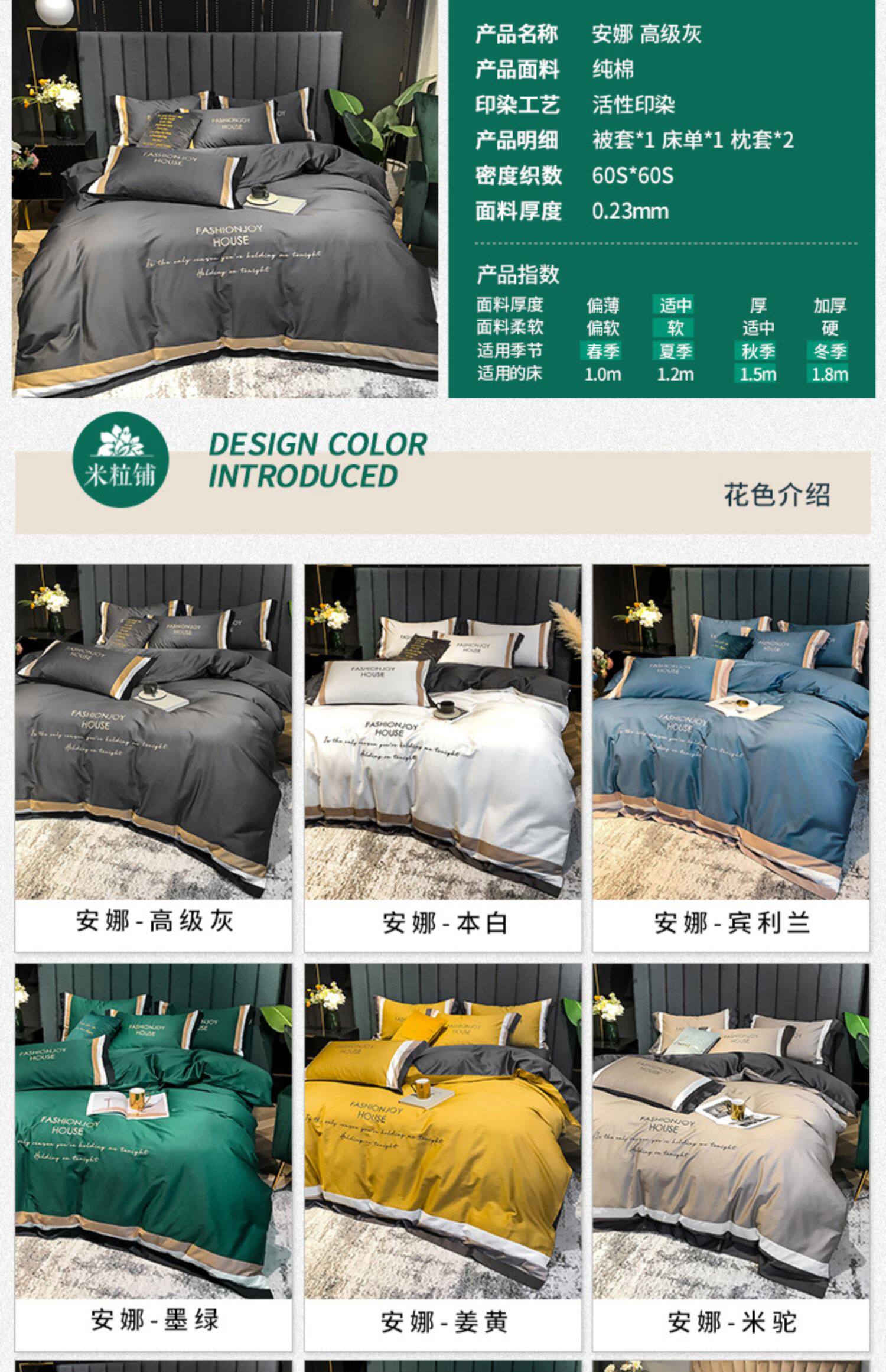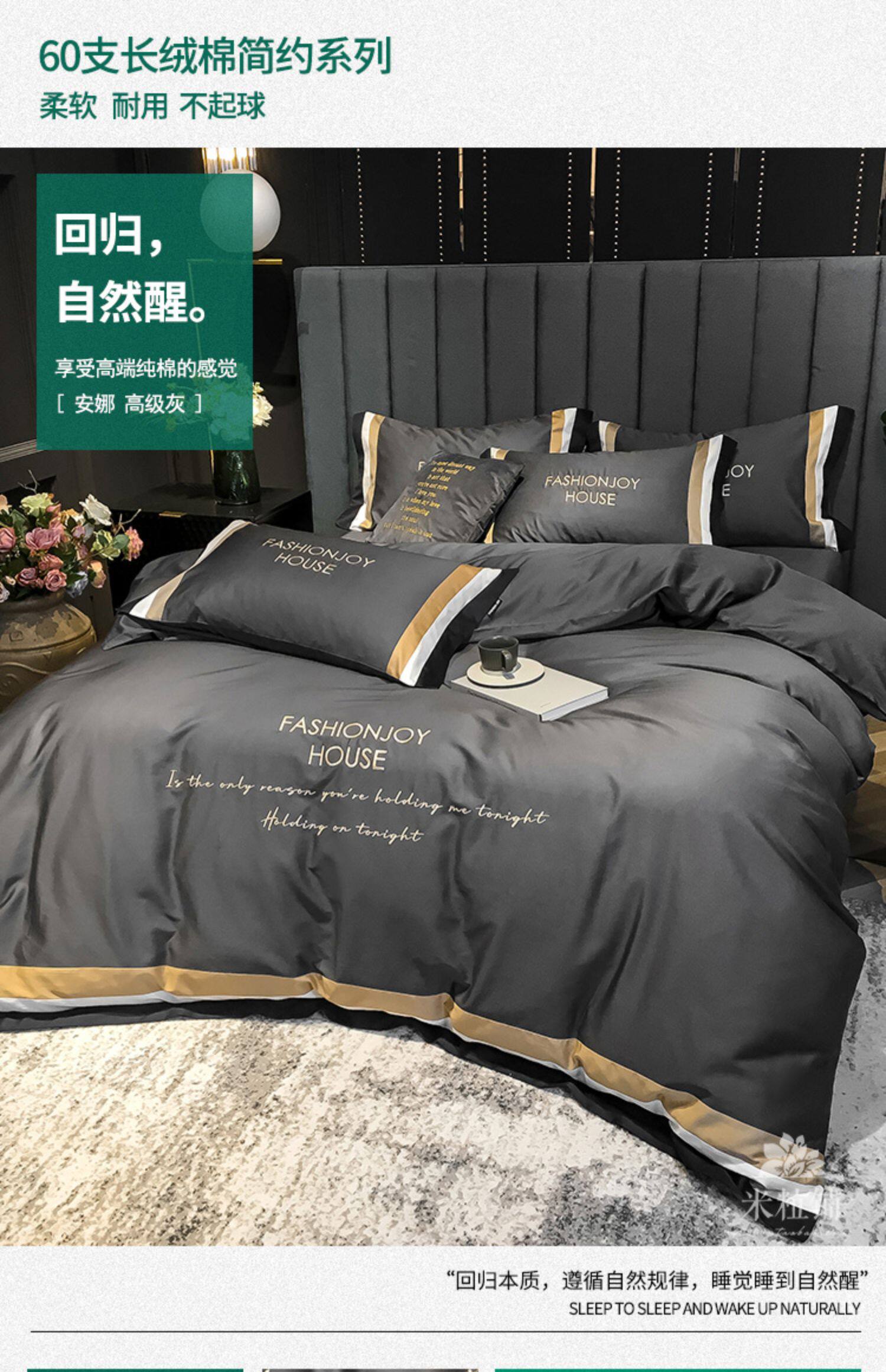 Хлопковый комплект, хлопковая простыня, пододеяльник, покрывало, 60 шт, 4 предмета, простой и элегантный дизайн