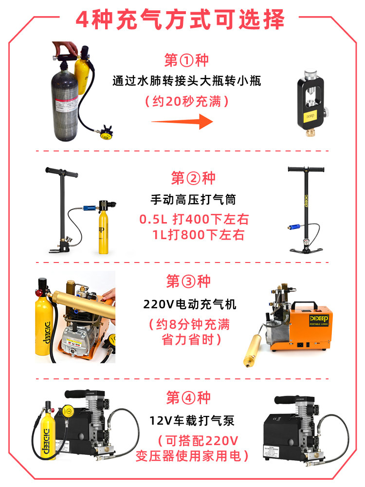 Dideep подводный кислородный бак портативный 1L воздушного цилиндра подводной запасной кислородный бак под водой дыхательный набор