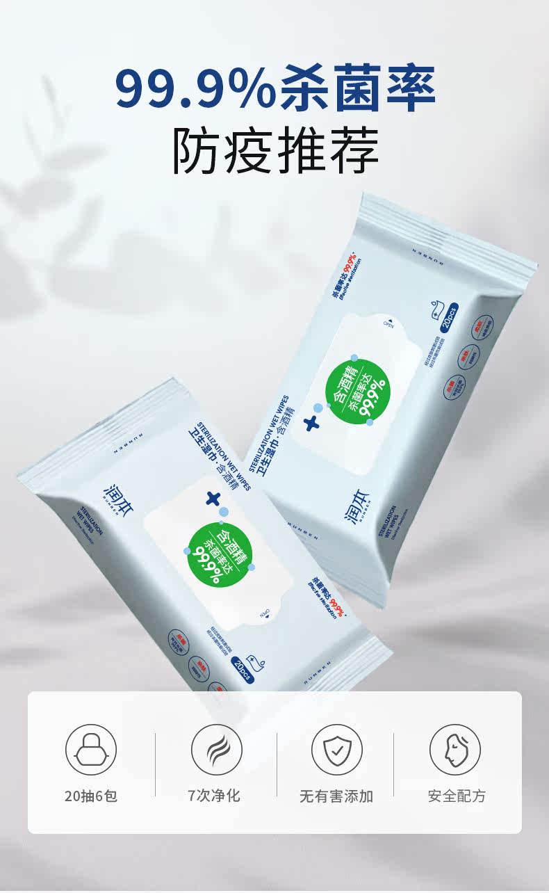润本 Антибактериальные салфетки, портативная небольшая сумка