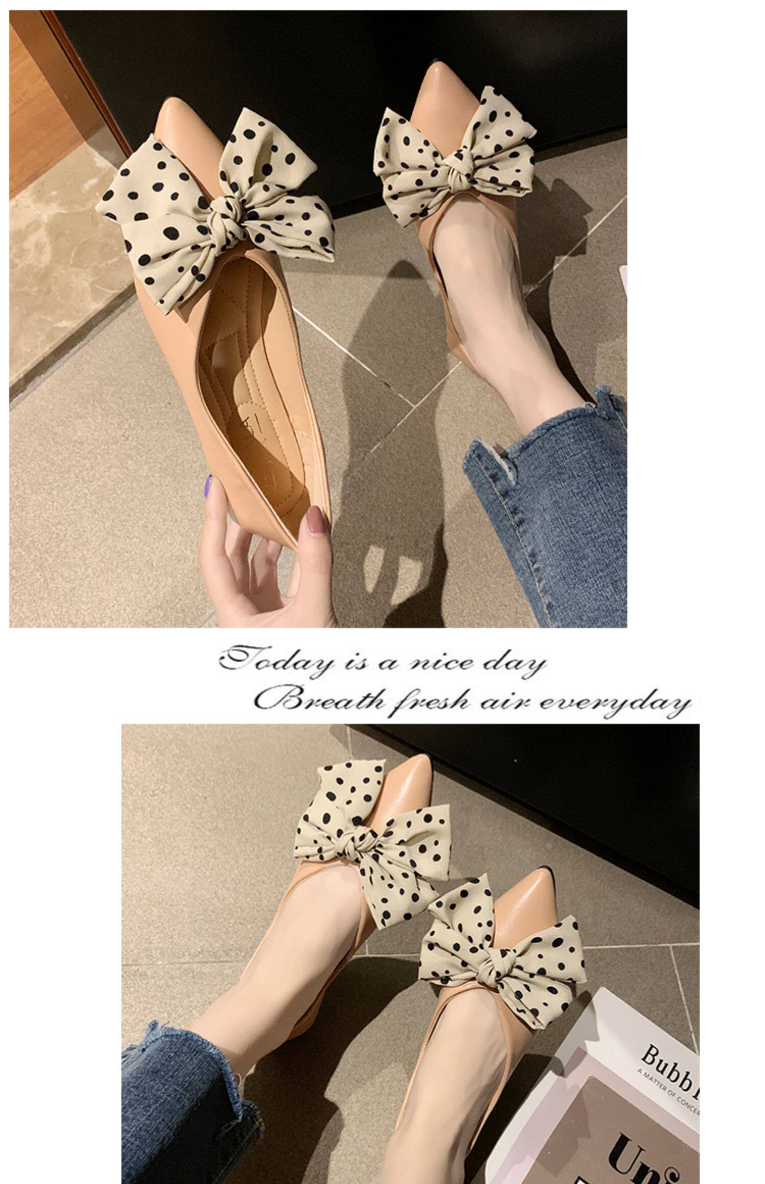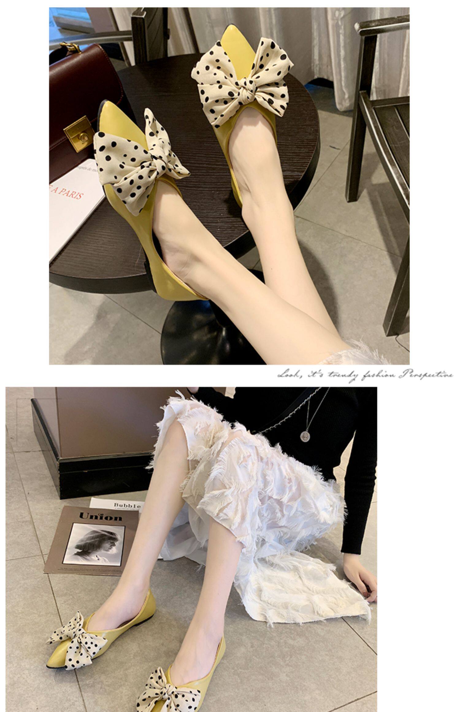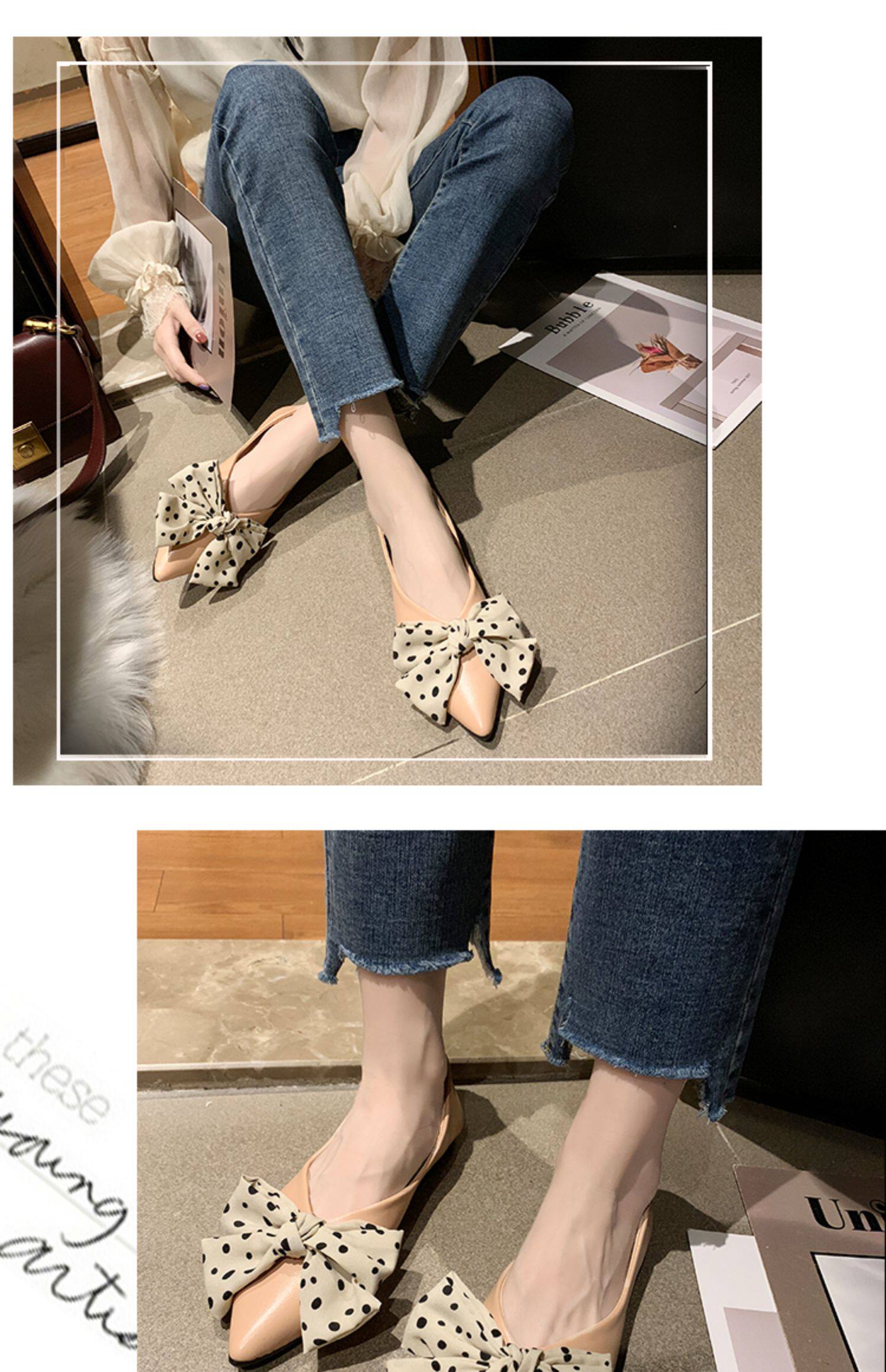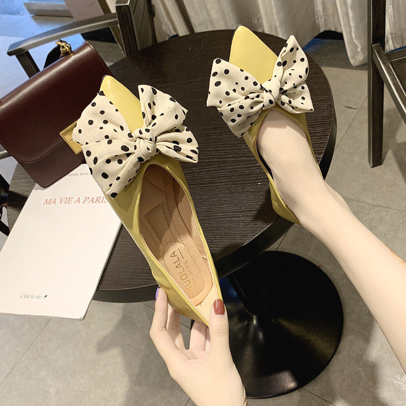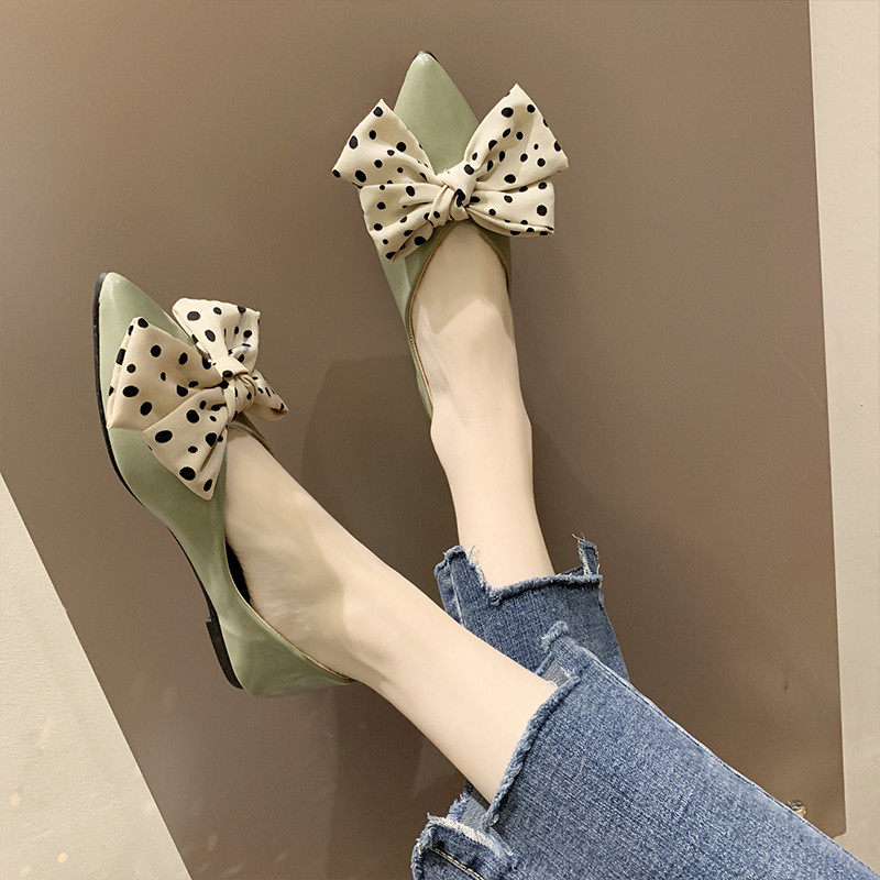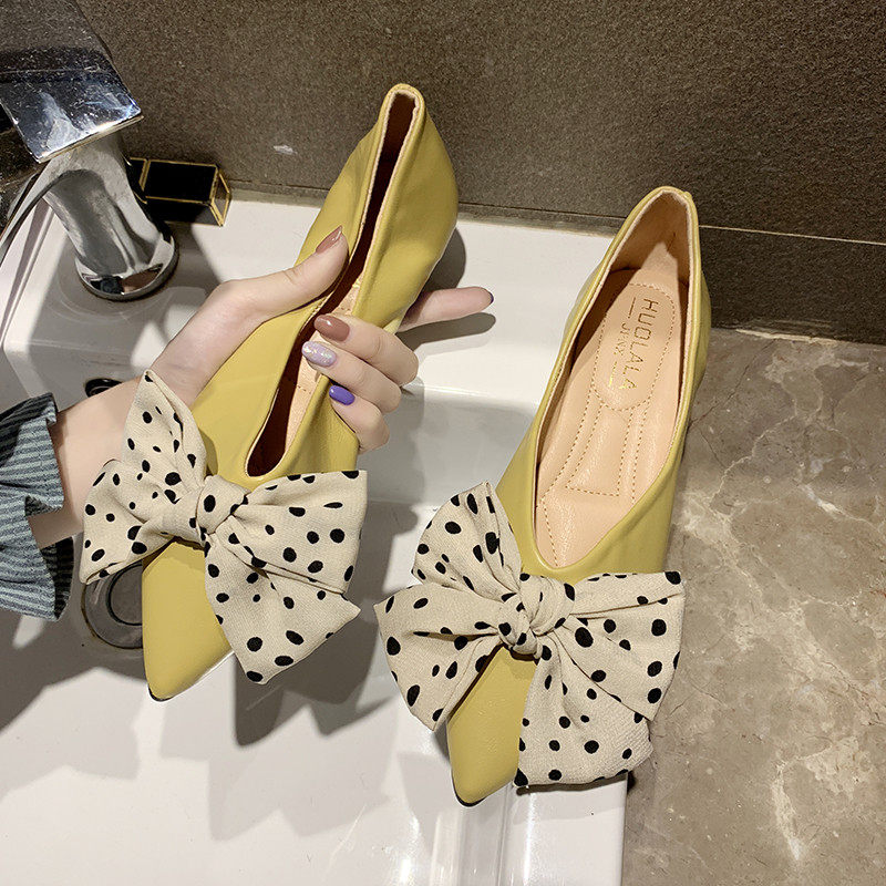 Весенняя универсальная плоская подошва обувь с заостренным носом с низким вырезом с бантиком, коллекция 2021, тренд сезона