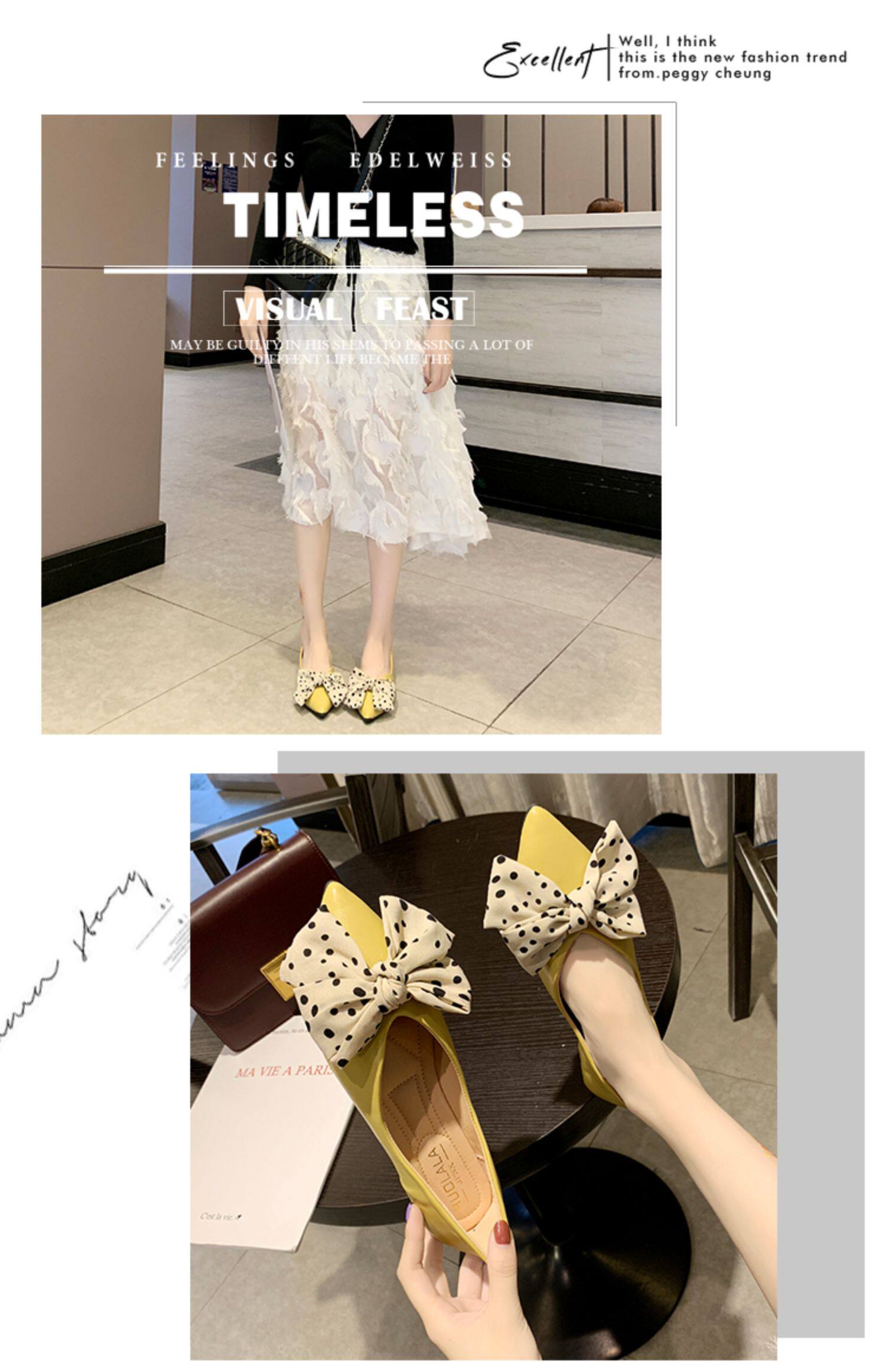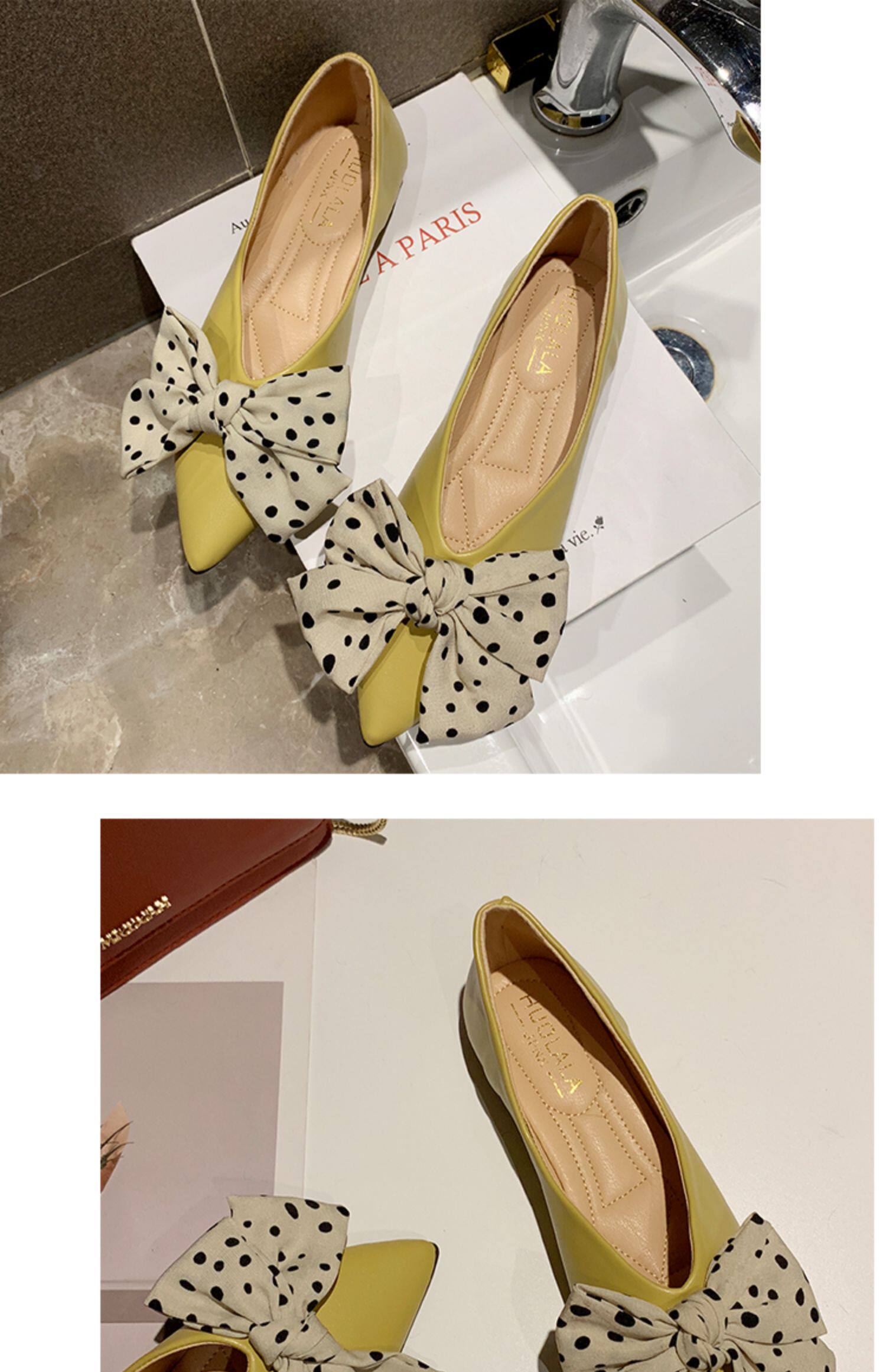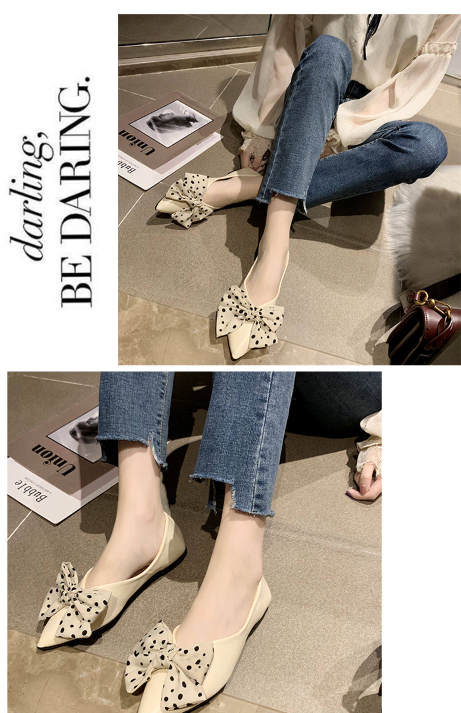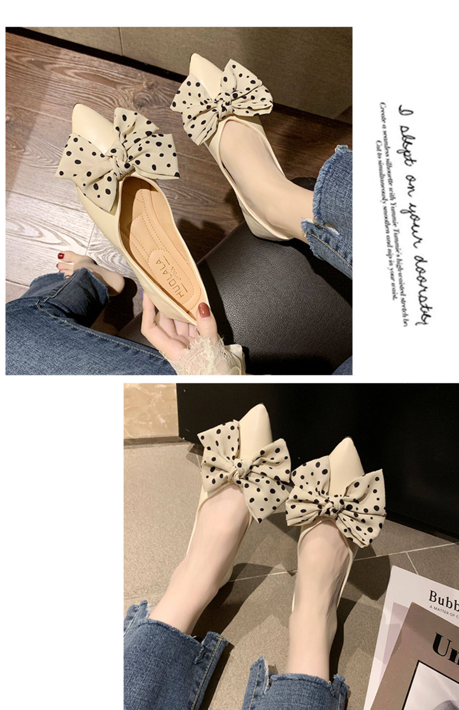 Весенняя универсальная плоская подошва обувь с заостренным носом с низким вырезом с бантиком, коллекция 2021, тренд сезона