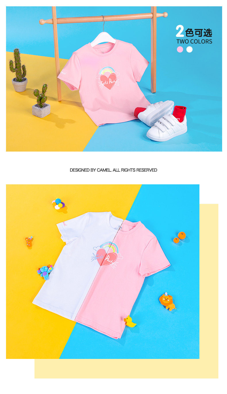 Розовая хлопковая дышащая милая детская футболка, детская одежда, короткий рукав, круглый воротник