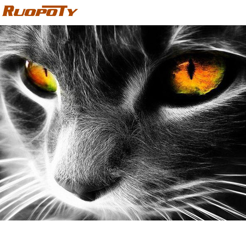 Ruopoty рамка кошка DIY рисовать по числам животные акриловые
