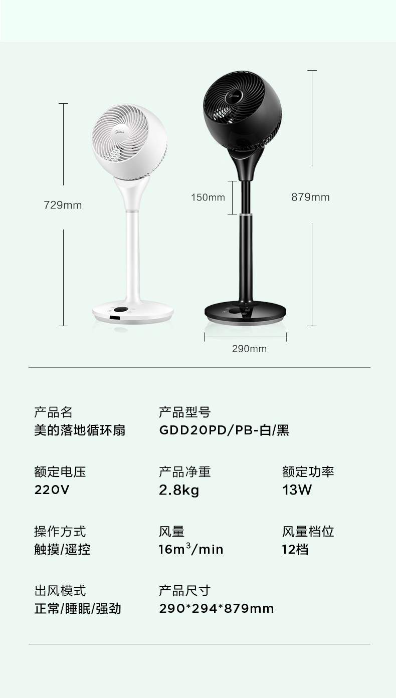 Midea Electric Fan Home Home Home Noyse Inverter Inverter Inverter Remote Turbine Air -pta Fan Fean Fan20pd