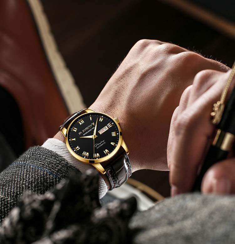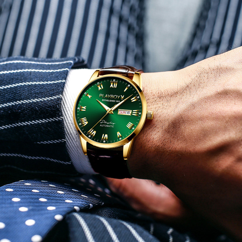 Мужские знаменитые часы, швейцарские часы, мужские часы, механические механические часы, водонепроницаемый ремень, полностью автоматический, из натуральной кожи