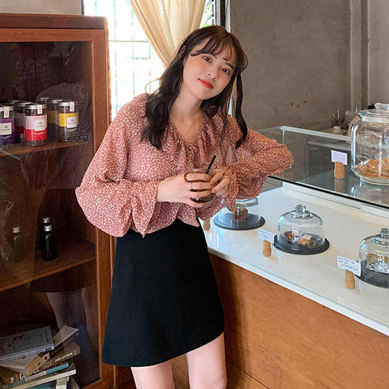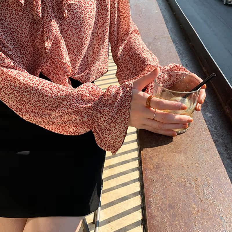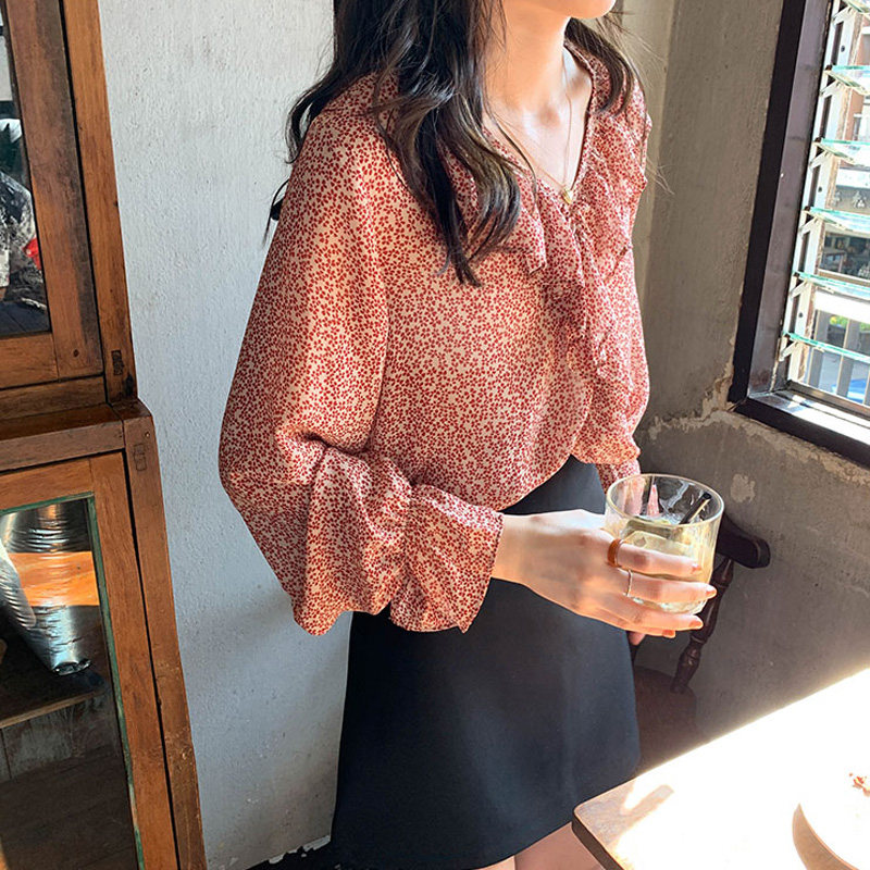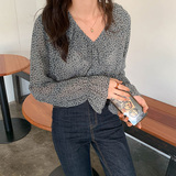 Шифоновая базовая приятная телу рубашка, в западном стиле, V-образный вырез