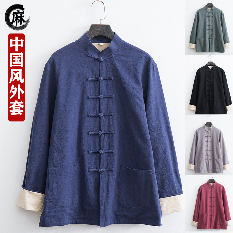 Ретро осеннее ханьфу, куртка, китайский стиль, из хлопка и льна