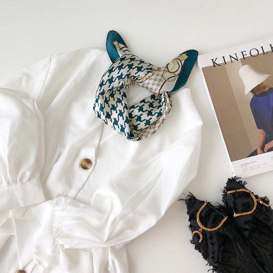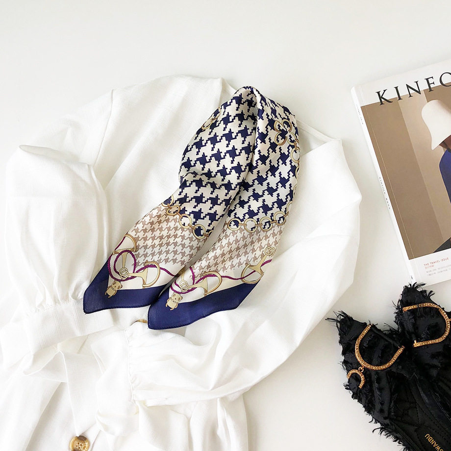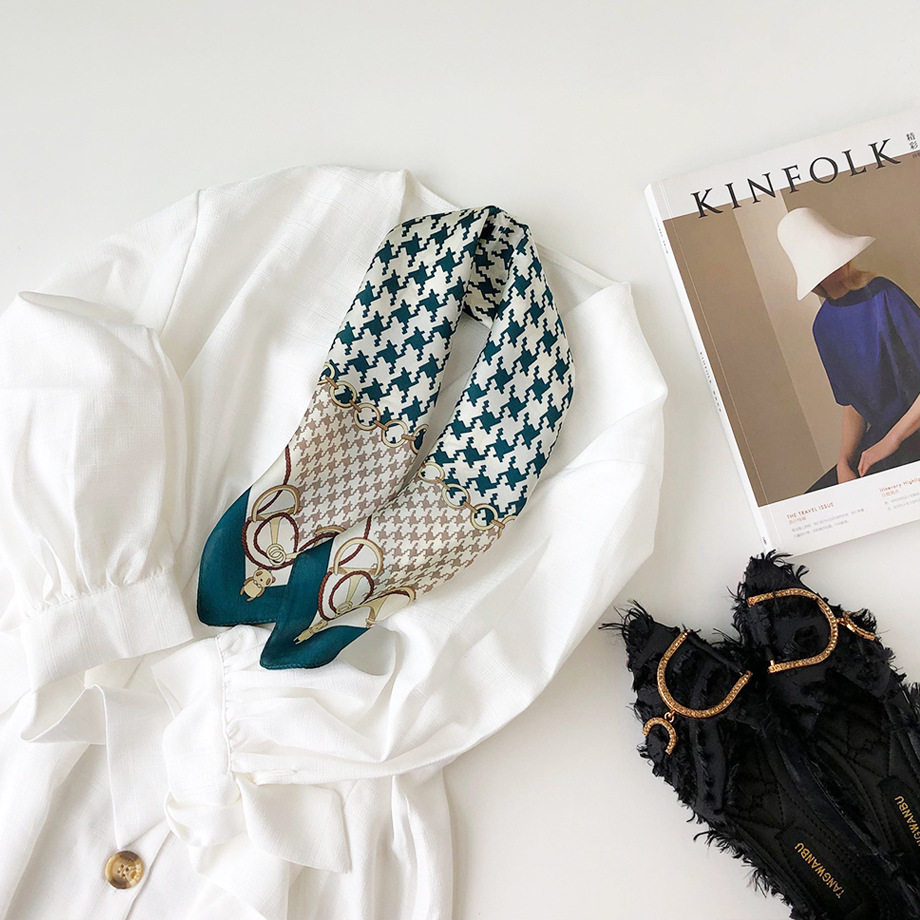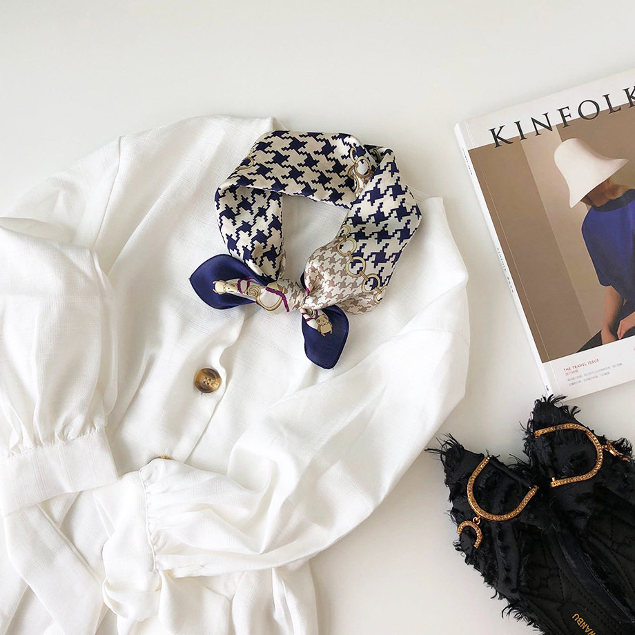 Шелковое полотенце женское маленькое шелковое полотенце весна и осенью корейский декоративный дикий студент шелкового шерста маленький шарф тысячи прилив сетки птиц маленький шарф