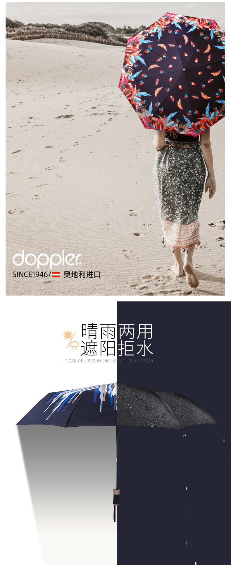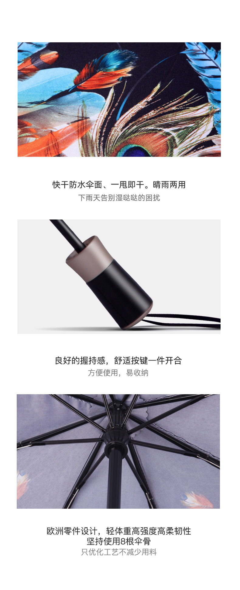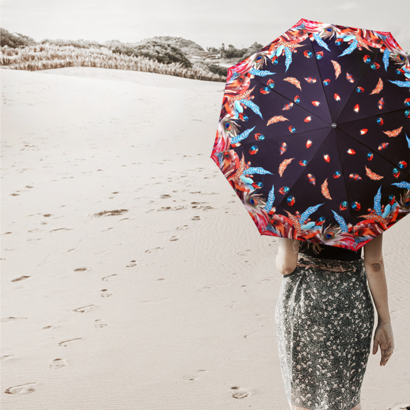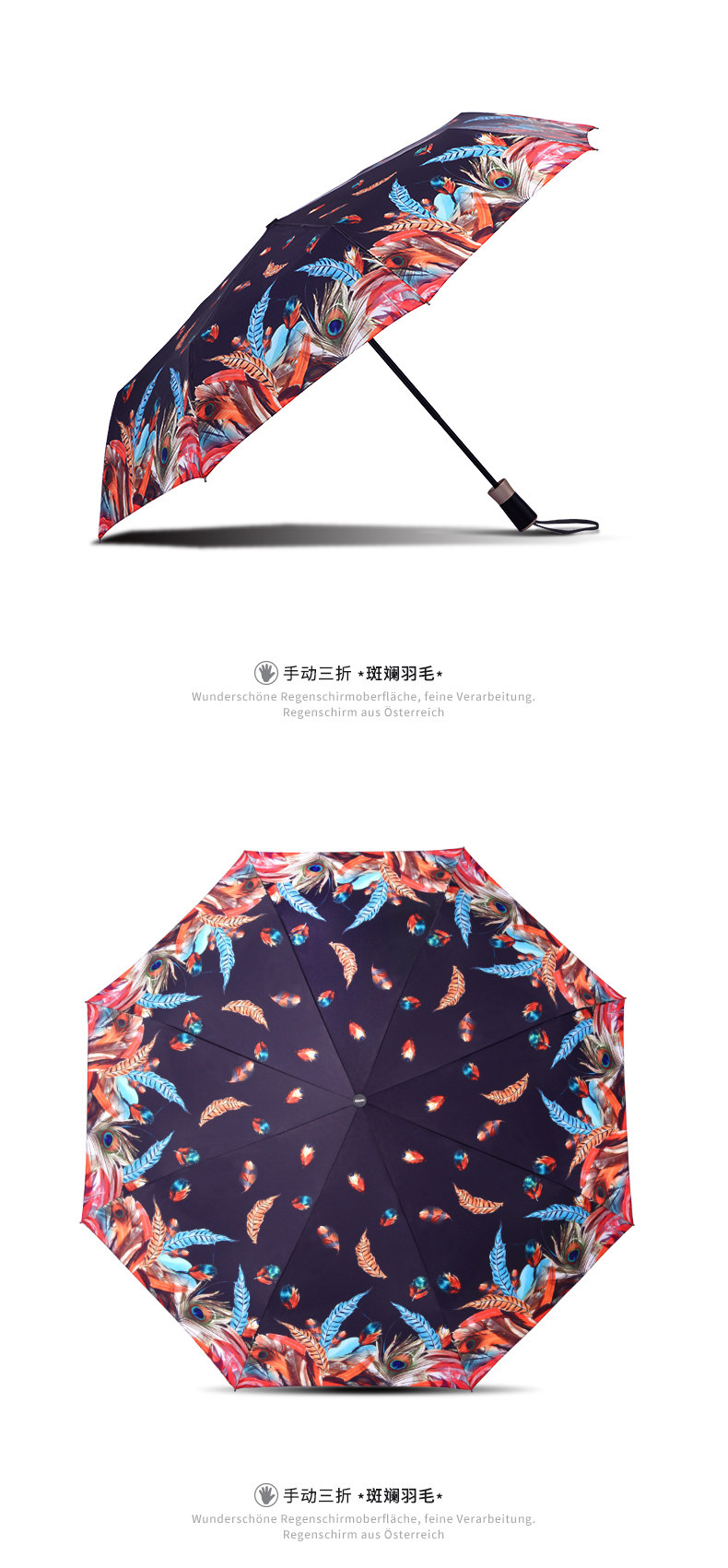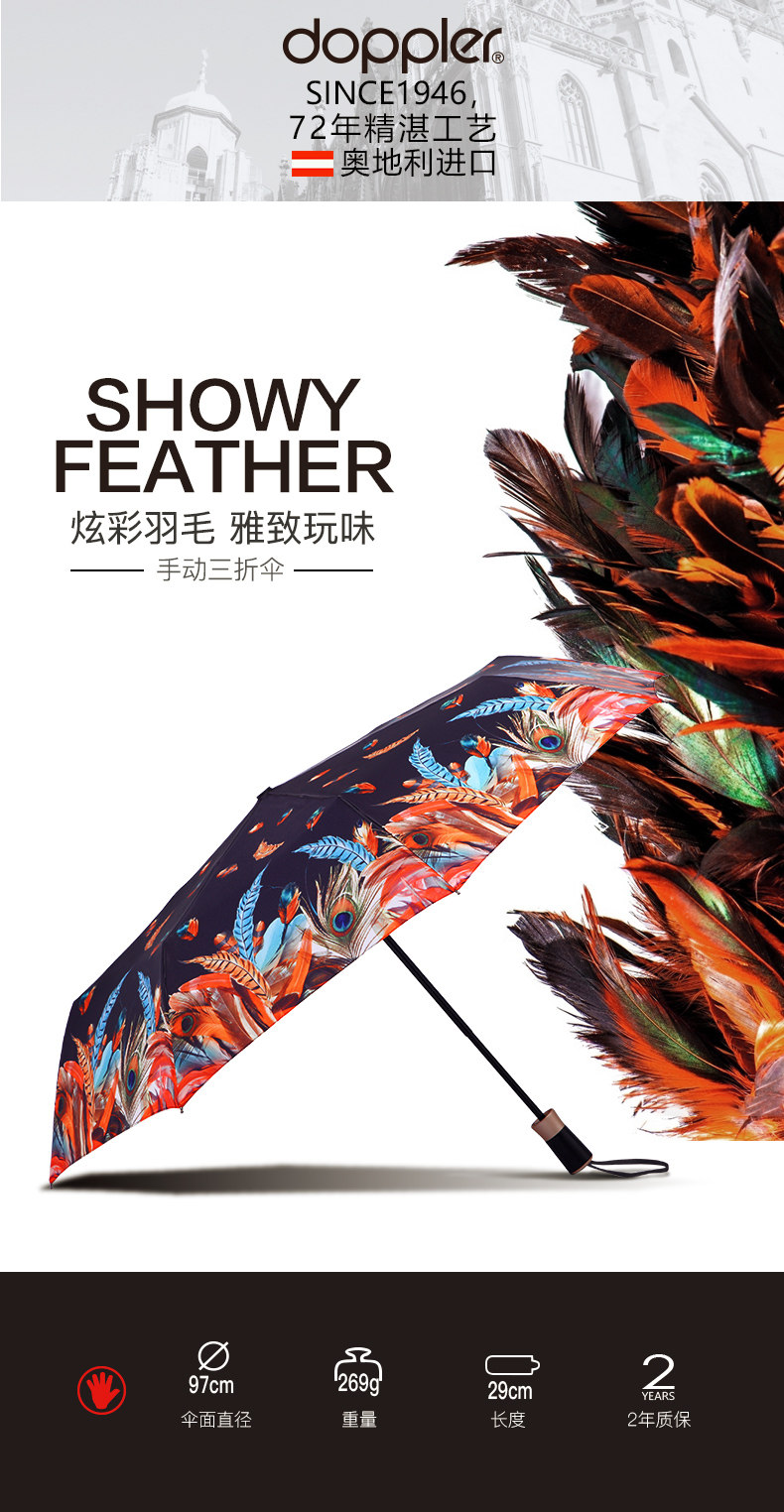 [Прямой бизнес] Австрийский допплер красочные перья Руководство с тремя сфере зонтиков и зонтичные мужчины импортировали женщин