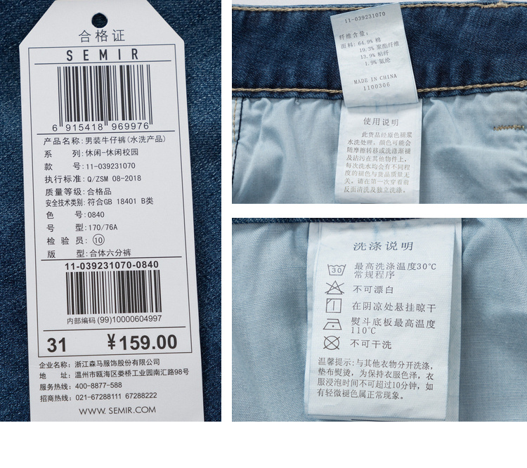 Semir, летние трендовые модные джинсы, шорты, штаны, ткань, подходит для подростков, свободный прямой крой