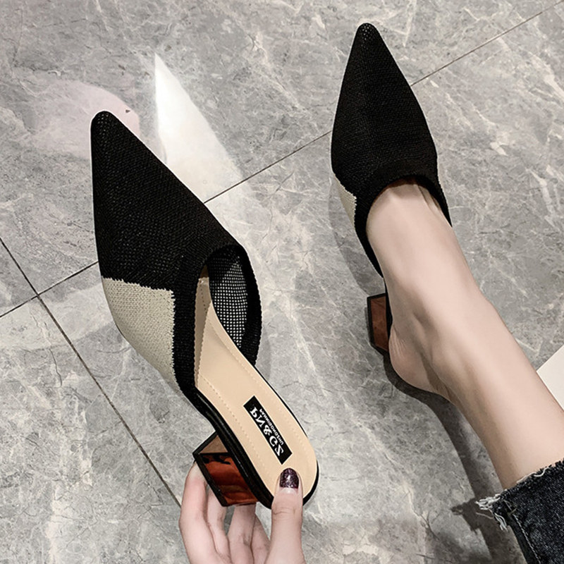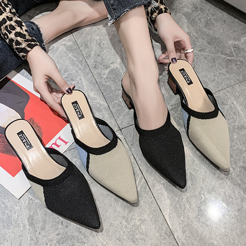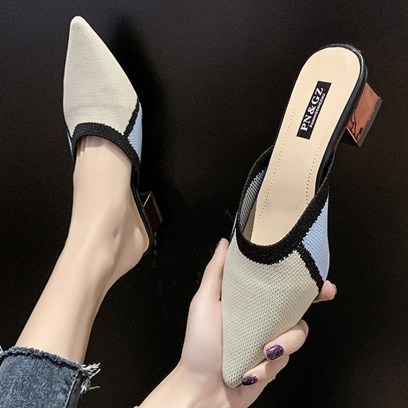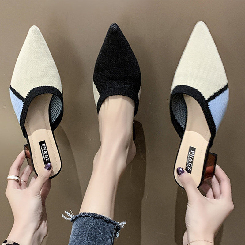 Летние трикотажные тапочки, обувь с заостренным носом, 2020, в корейском стиле